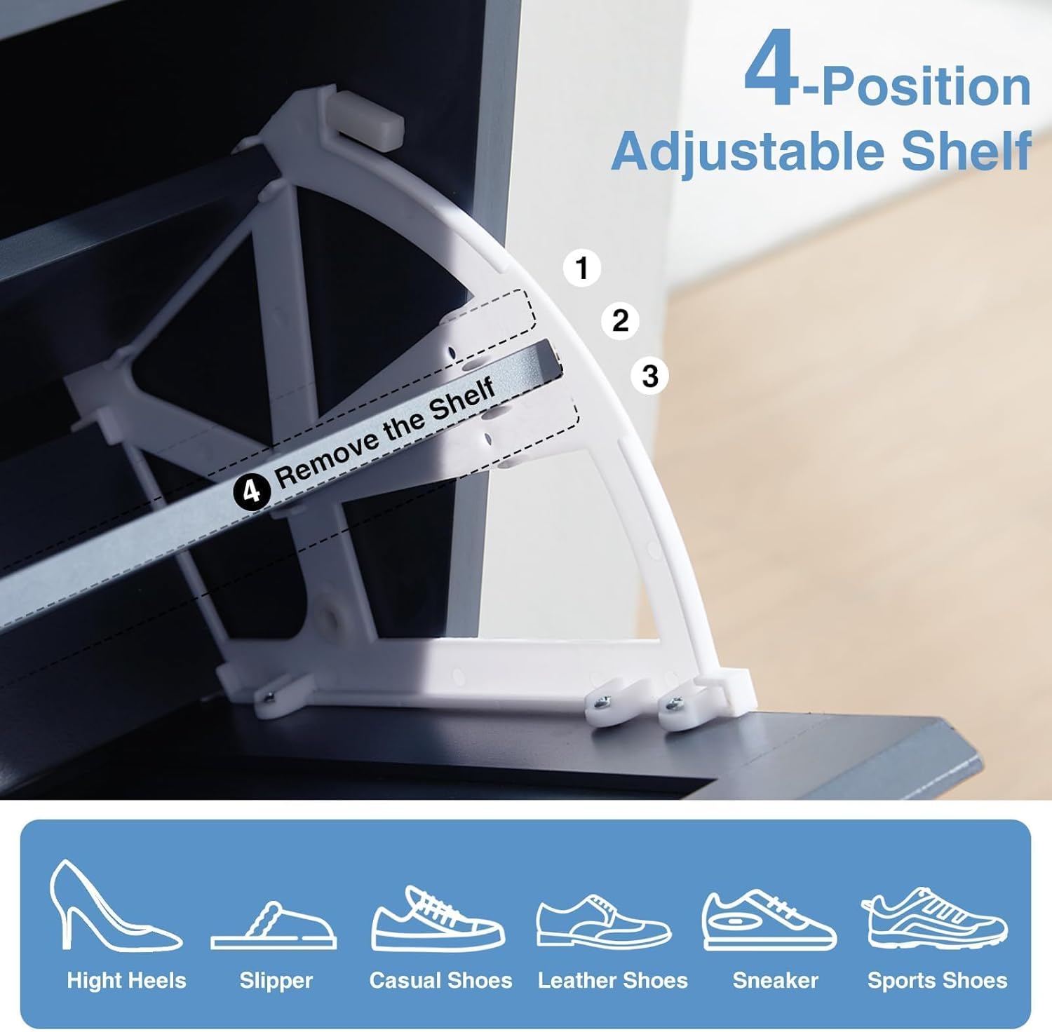 - 【Farewell to Shoe Piles】Keeps shoes handy but out of sight. Your guests will never guess that you have 16 pairs of shoes stored in this shoe cabinet it is that smart-looking. Two flip drawers and each with two layers. Need storage for ankle boots and high heels? You can easily adjust the space in the shoe compartments by moving or taking away the dividers