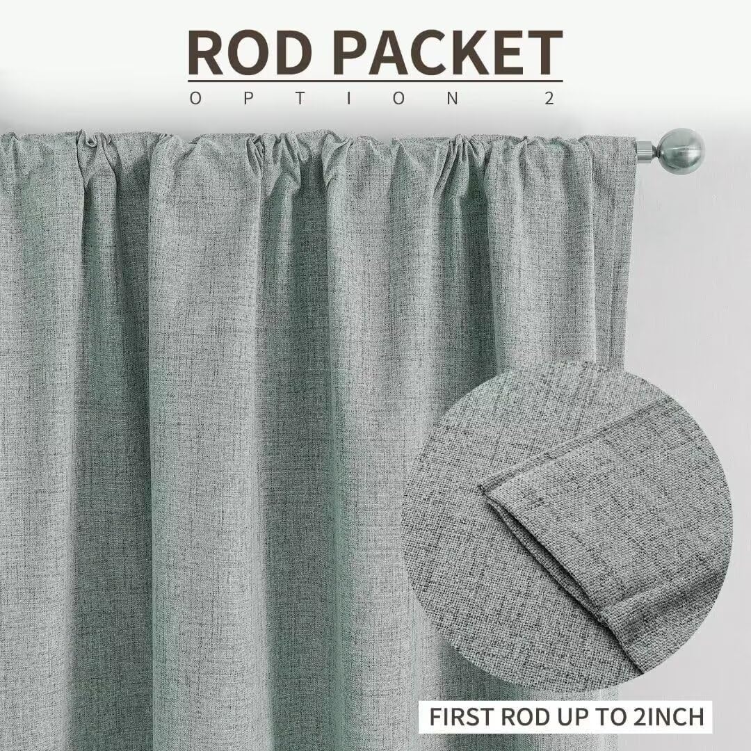 Joydeco Natural Linen Curtains 120 inch Length 2 Panels Set Burg 100% Blackout Patio Door Curtain Room Darkening Sliding Door Curtains Thermal Insulated Back tab Rod Pocket(105x120 inch, Sage Green)