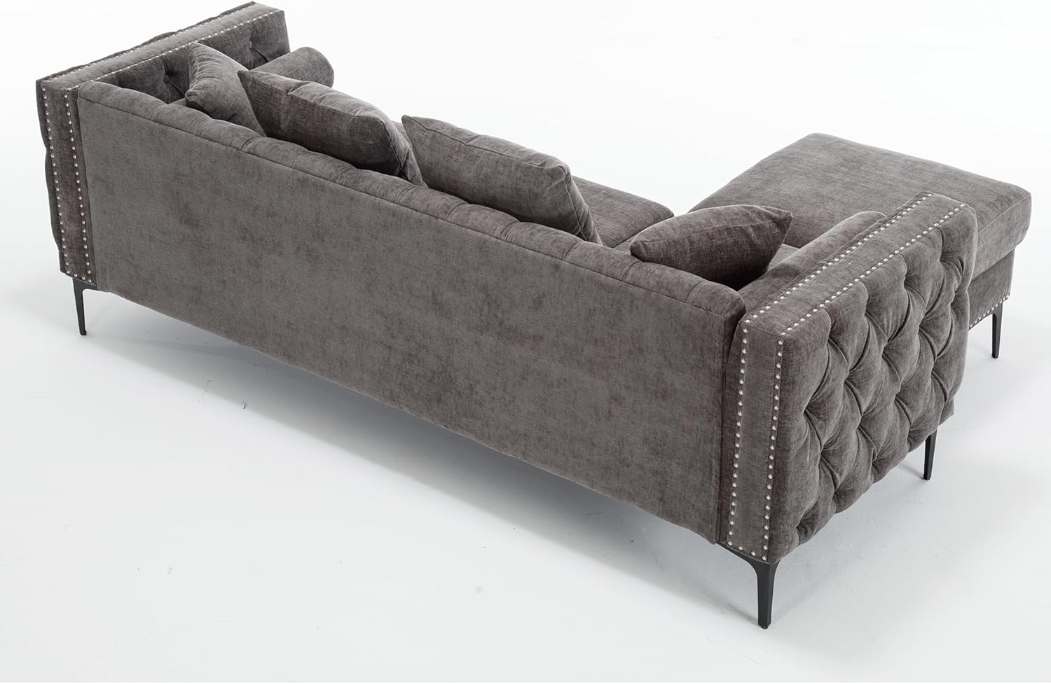 - 【Modern Fashion Sofa】Overall Dimensions - 85*53.5*37''(L*D*H). Fluffy cushions and Rivet handrail with modern metal legs sectional a stylish and timeless look that will better decorate any style of living room. Tip: This is a slip-on sofa with storage function, you can put it anywhere.