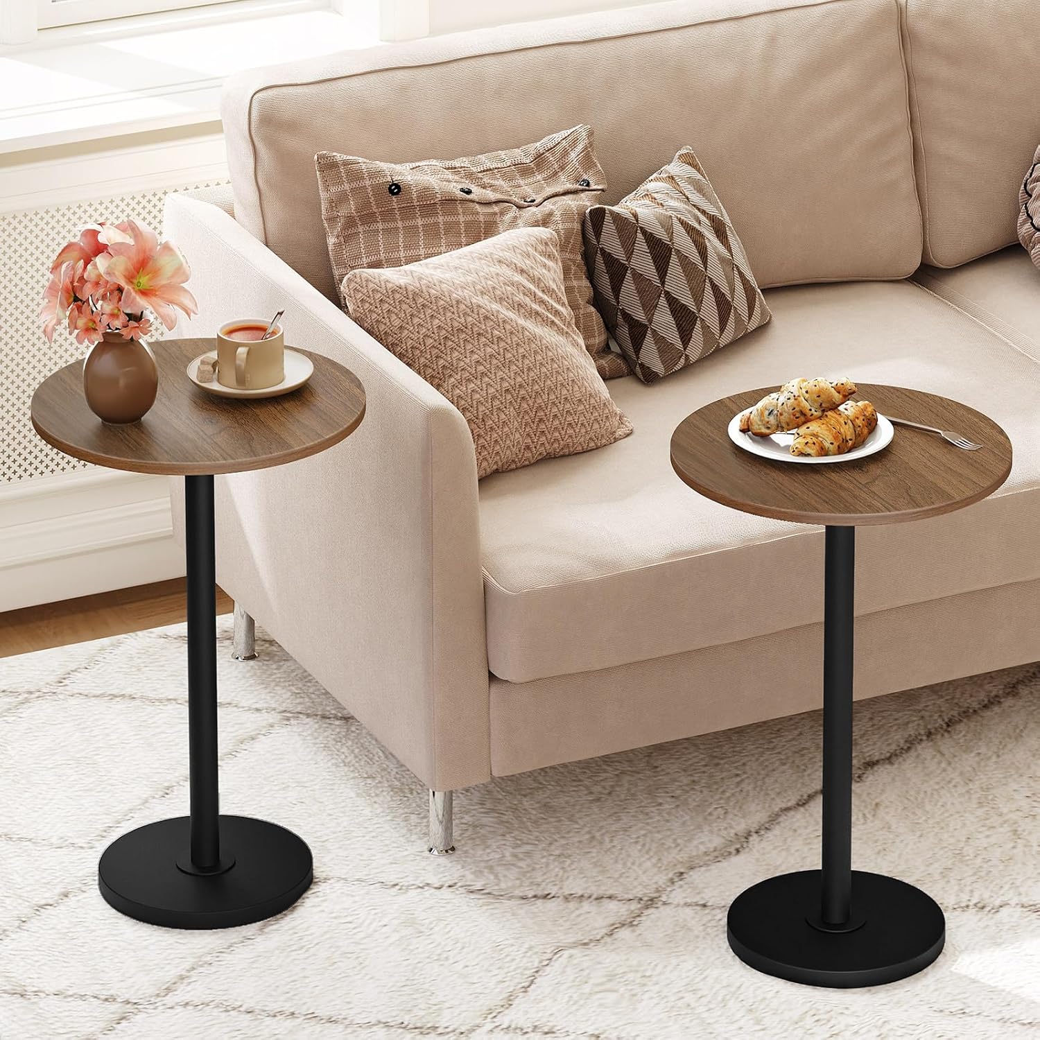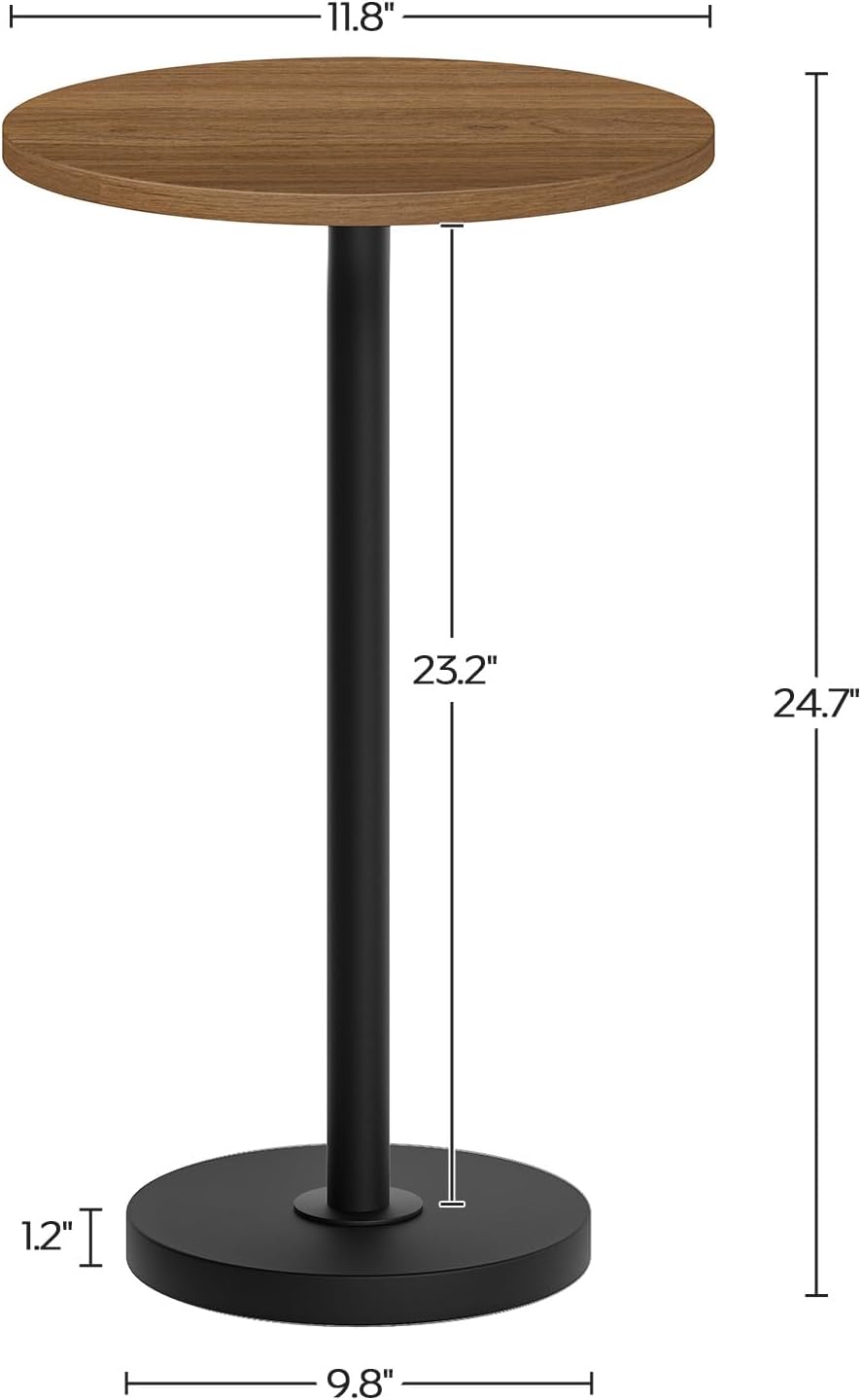 - Compact Space Companion: End table tailored for small spaces, this round side table stands at a perfect height of 24.7 inches with a 11.8-inch diameter top. Ideal as a storage aid beside your sofa or bed, it maximizes the utility of every little corner