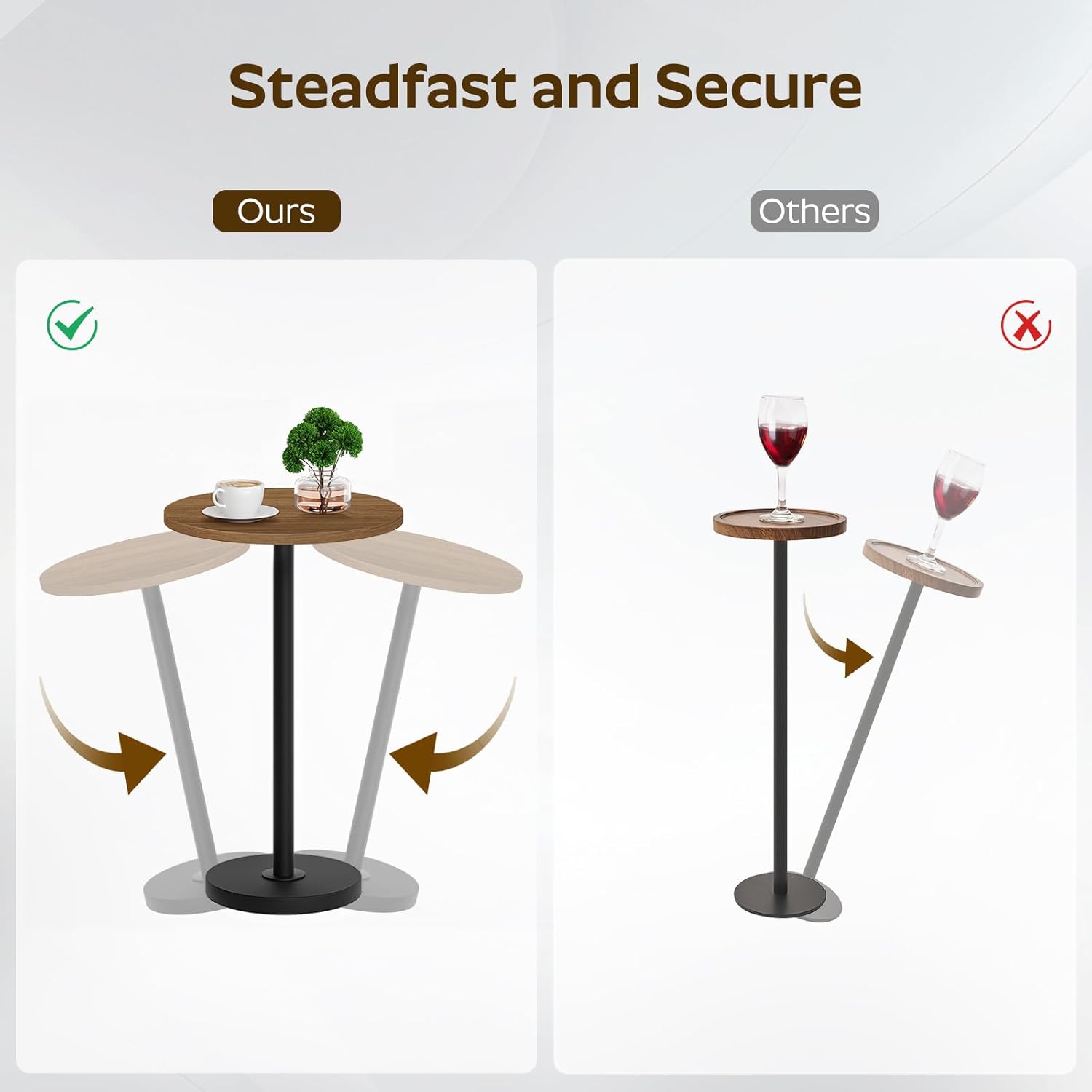- Sturdy and Reliable: Boasting a 5.5-lb thickened base, this small drink table offers exceptional stability without unexpected wobble. Martini tables combined with sturdy metal rods and high-quality particleboard, it withstands daily challenges easily