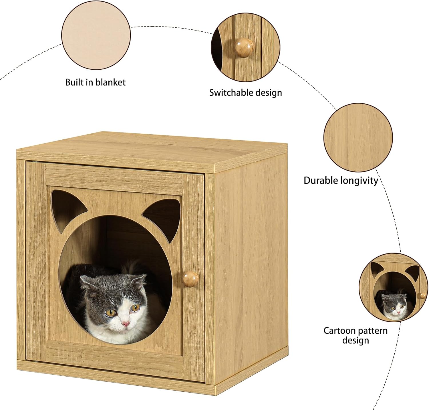 - 【Hidden And Beautiful】This cat cube house provides a hidden sleeping space for your cats and rabbits, and has a lovely cat door design that can be freely entered and exited, so that the meow star will feel at home as soon as it enters the door; the overall shape of the overall simplicity and generosity, not only to meet the needs of the cat's life, but also to become a decorative piece of the home, and the home environment in harmony