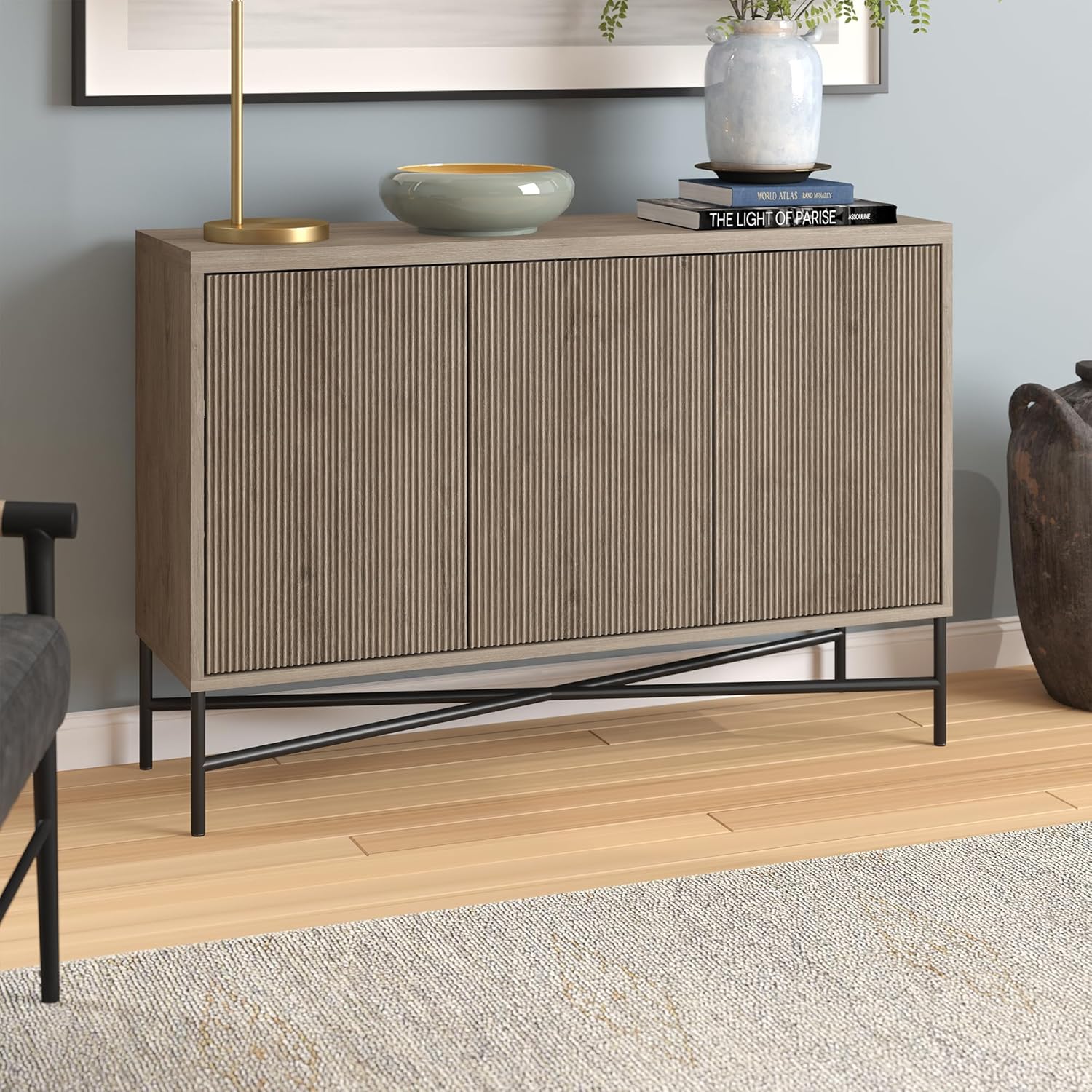 Henn&Hart 48" Wide Rectangular Buffet Table in Weathered Gray, for Home, Living Room, Bedroom, Entertainment Room, Office