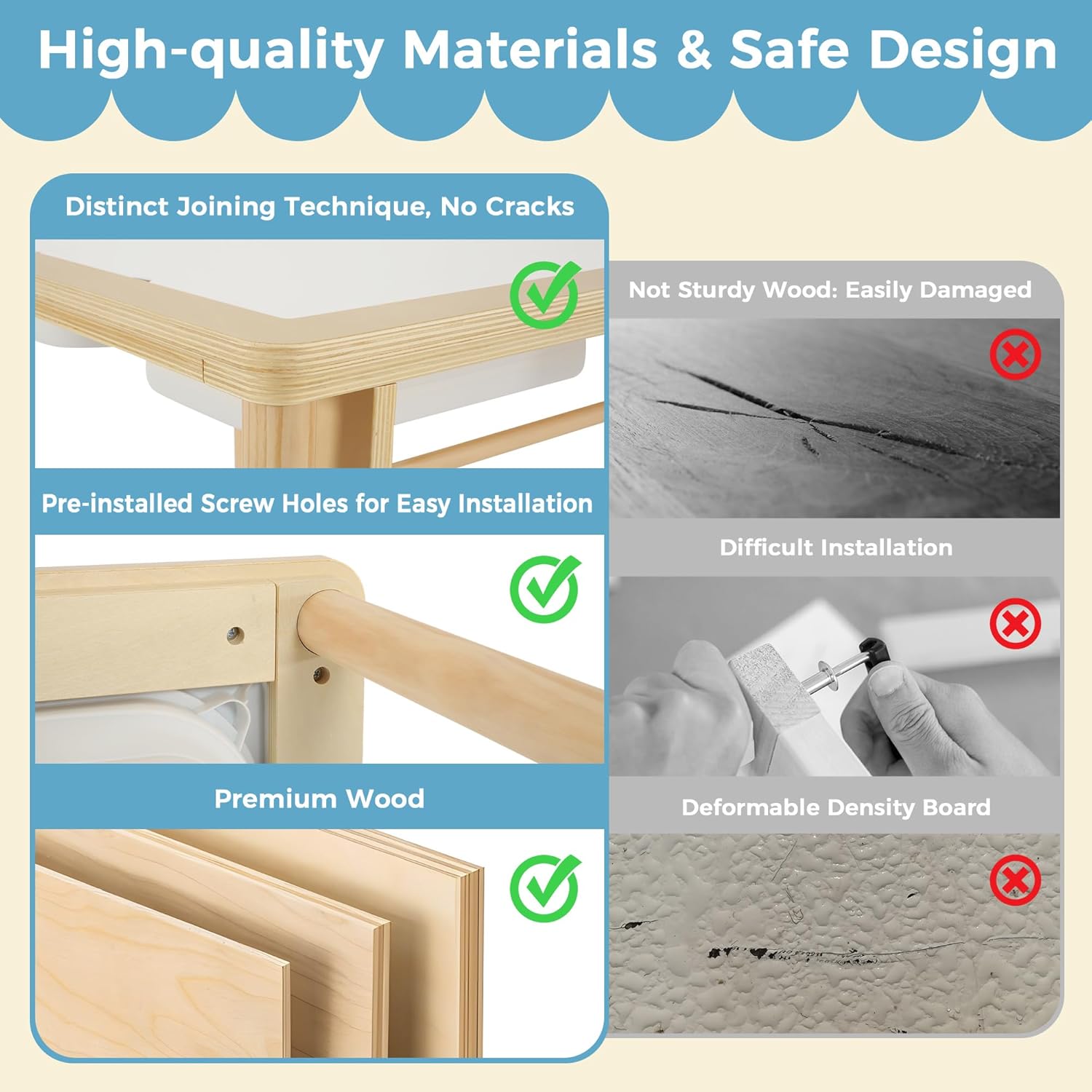 - NATURAL SAFE WOOD: Crafted from premium, natural wood, this kid table is built to last. Smooth, rounded edges and sturdy legs create a safe space where kids can enjoy drawing, painting, and crafting freely.