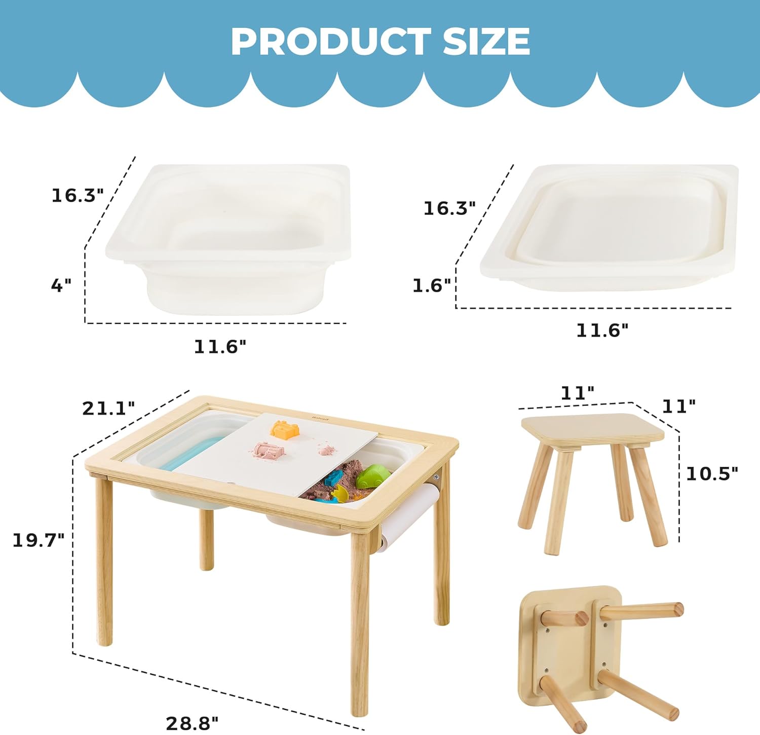 - PROMOTES SENSORY EXPLORATION & DEVELOPMENT: The sensory table encourages hands-on play with sand and water, helping toddlers explore different textures and sensations. Such activities support sensory development, fine motor skills, and creativity in young children.