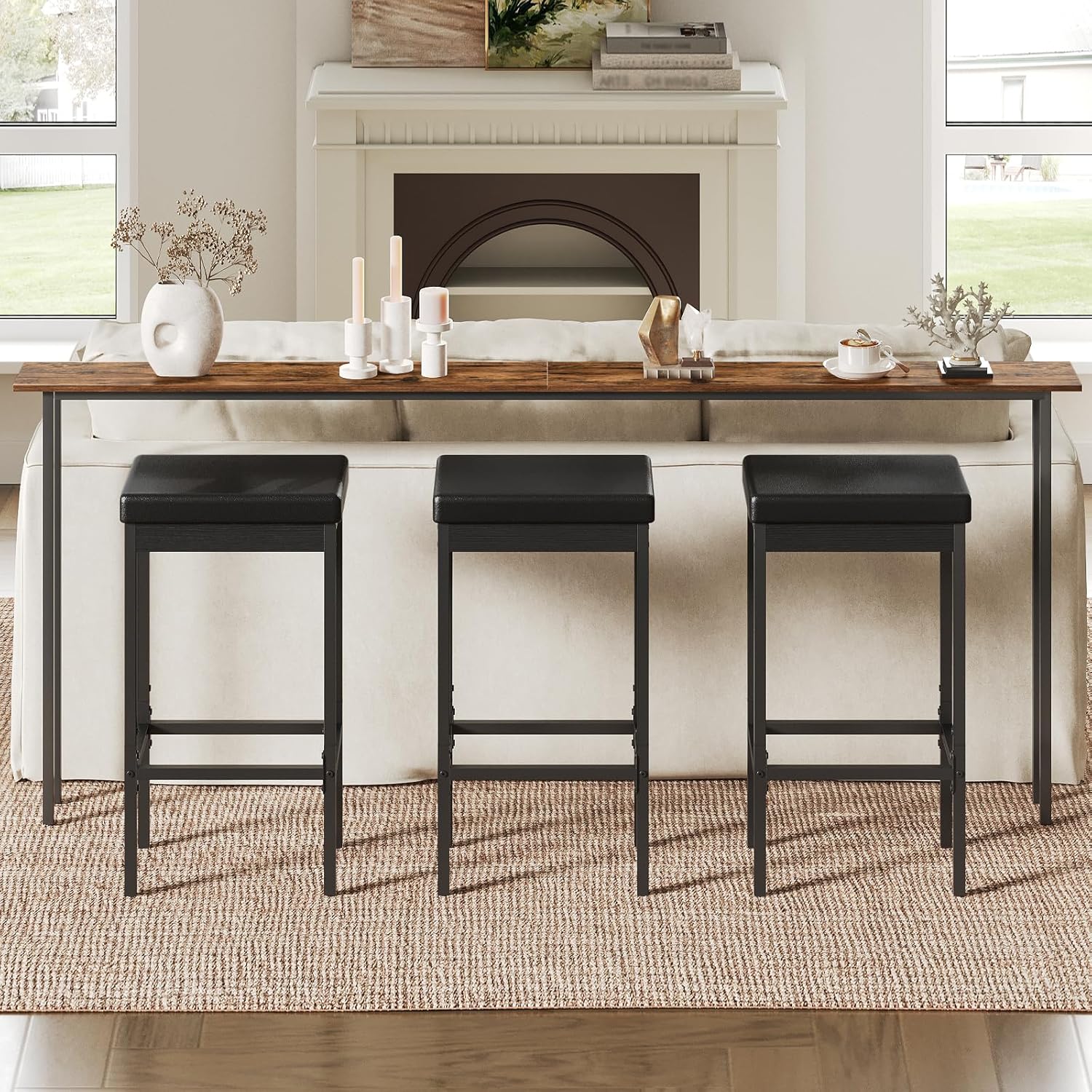 HOOBRO Bar Stools, Set of 3 Modern Black Rectangular Bar Chairs, 24.8-Inch Height, 2" Thick Upholstered Seat with High-Density Sponge, for Kitchen, Dining Room, Cafe, Bar Counter