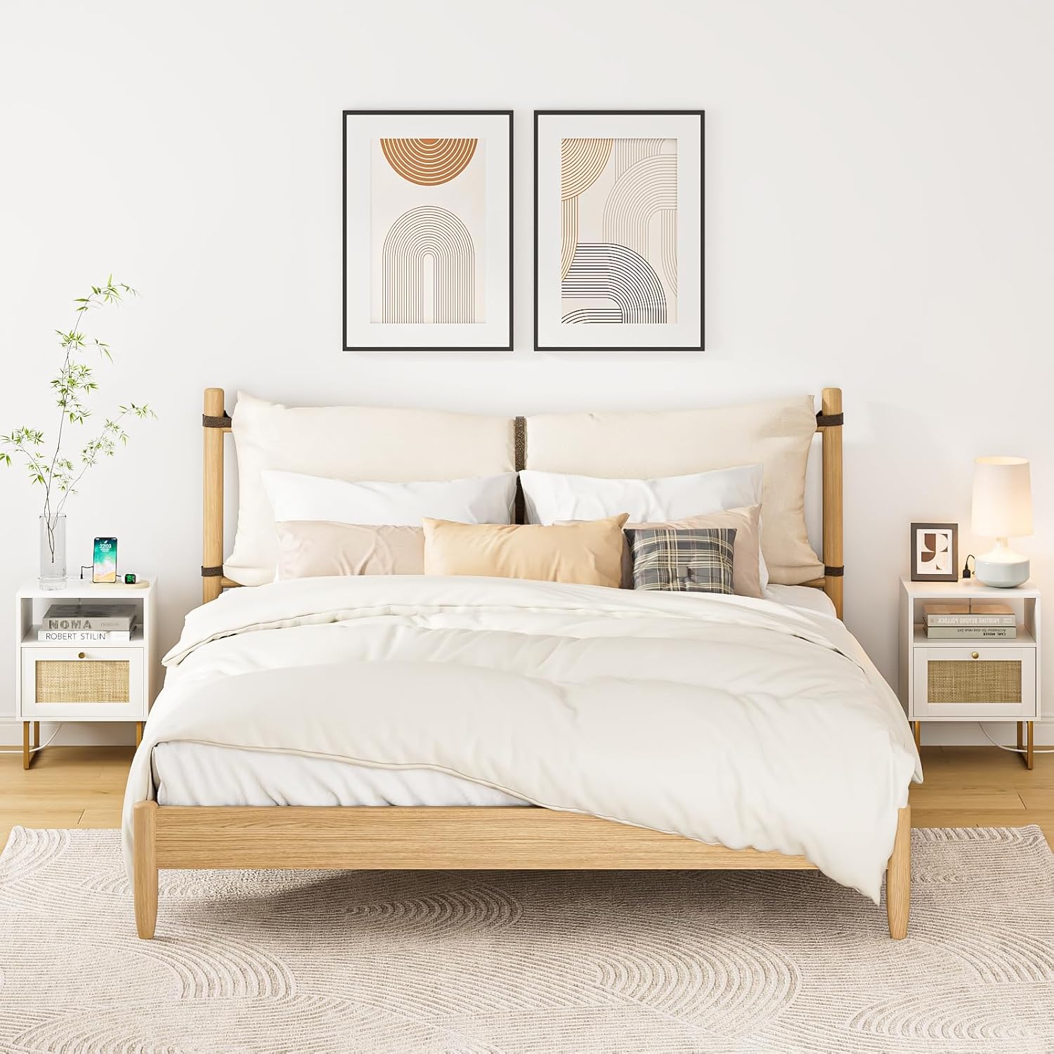 - Rattan Bedside Table: This bedside table combines elements of boho, the chic rattan design, elegant lines and stylish edges,will complement any decor as a sofa side table or nightstand