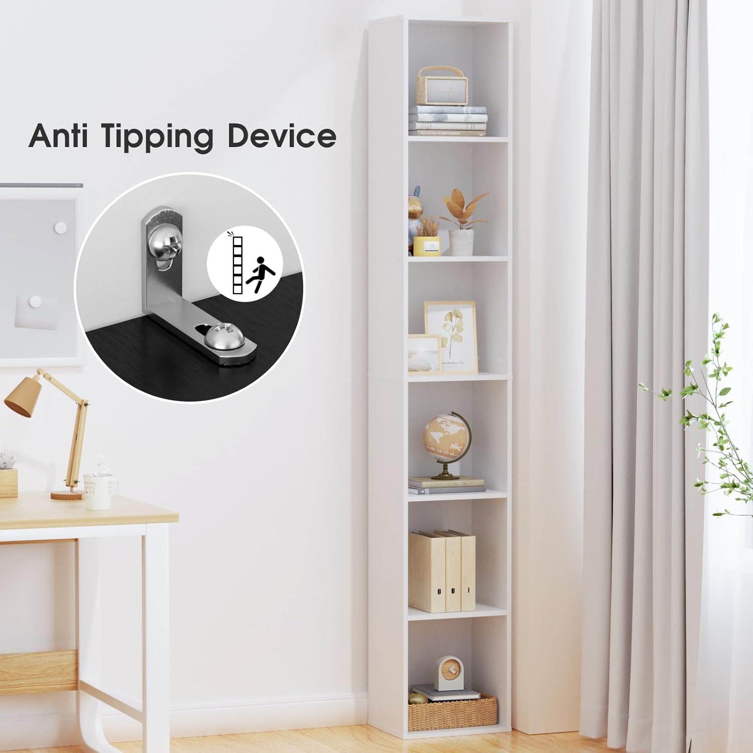 - 【STURDY AND DURABLE】The 6-shelf bookshelf is made of high quality particle board, sturdy and durable. The board surface is waterproof and scratch-resistant, and each shelf can hold up to 50 pounds. The bookshelf is also supplied with an anti-tip accessory that secures the bookshelf to the wall to prevent tipping injuries to ensure your safety.