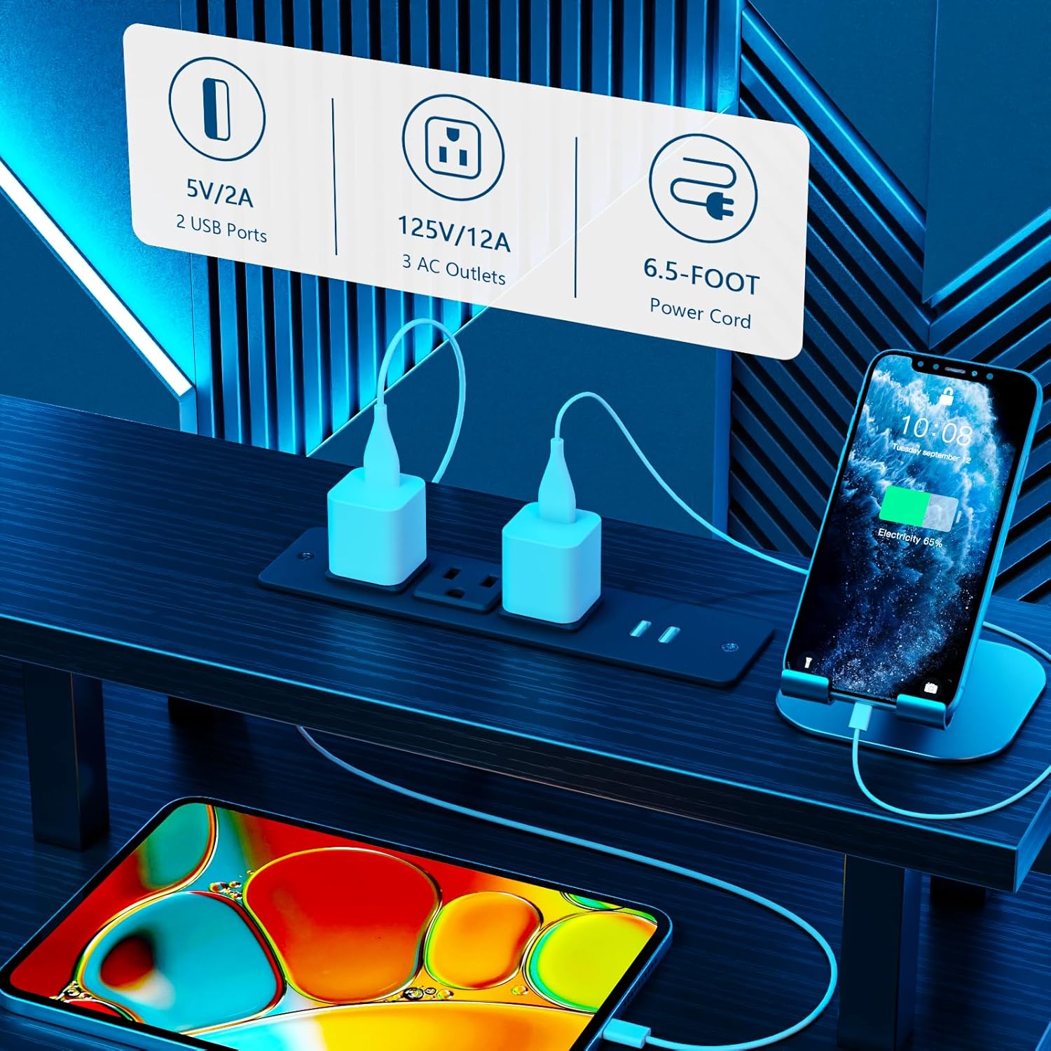- [Computer Desk with Charging Station]: The computer desk includes a built-in 3 power outlets and 2 USB charging ports for your phone, bluetooth, headset, tablet, power bank, gaming gear with fast charging, which provides a great convenience to your life when you are working or playing games.