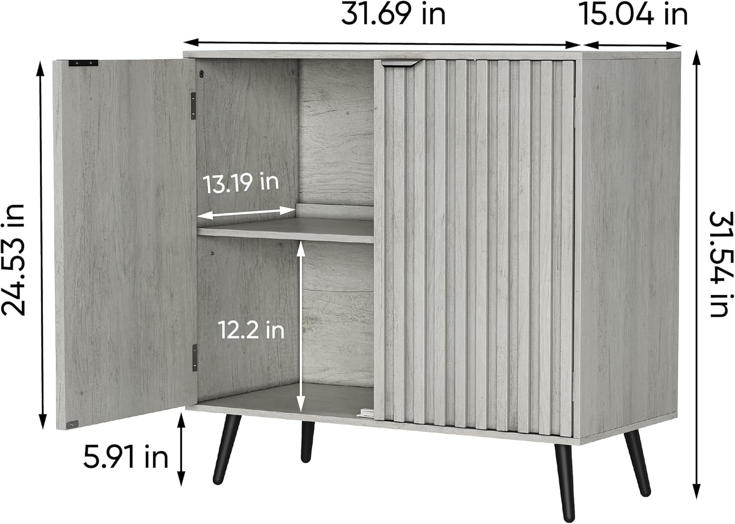 - Mid-Century Cabinet: The appearance of the gray fluted storage caibinet is designed with seamless grooves, and exquisite craftsmanship to make their appearance outstanding which is suitable for various home decor styles, especially traditional, classical, or modern retro styles.