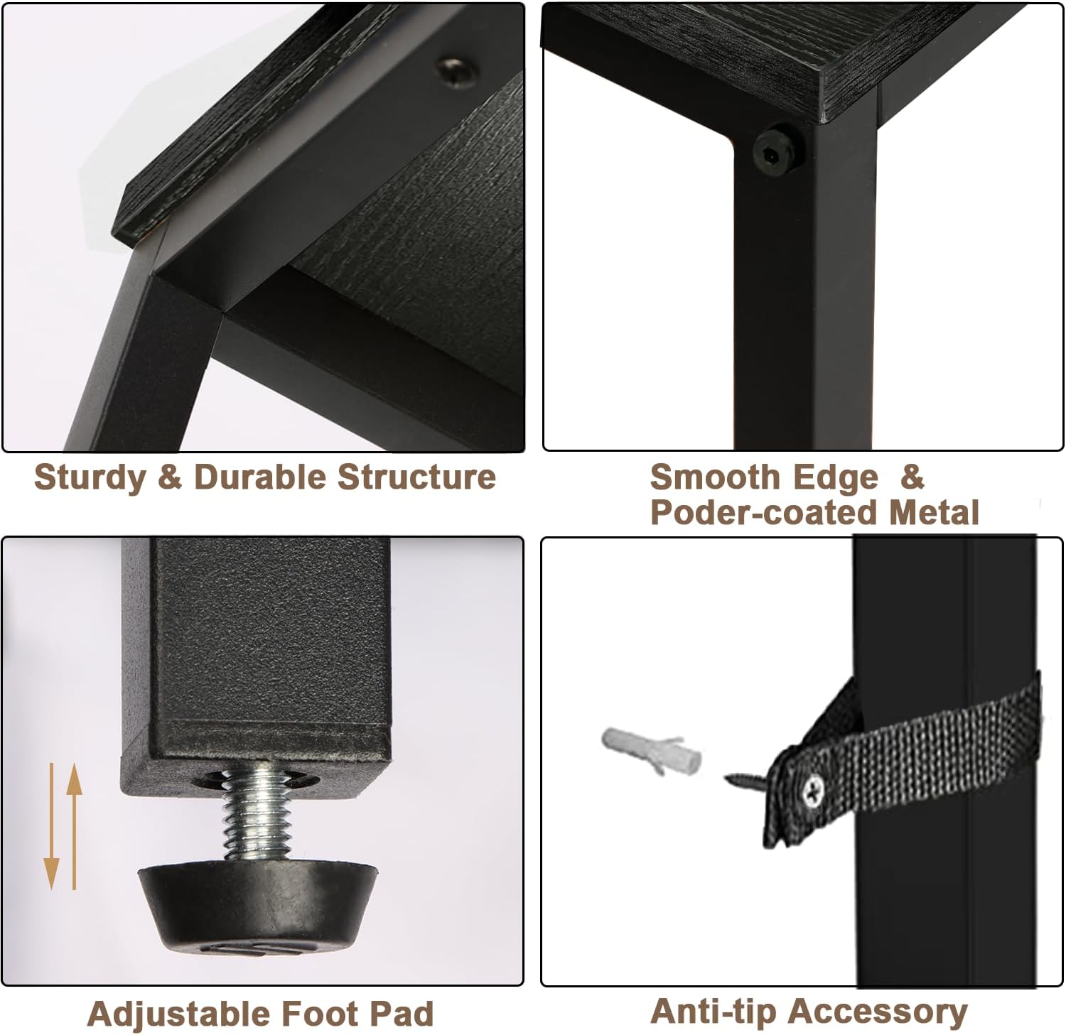 - Say Goodbye to Wobbles - Made of particle board and metal. Adjustable feet and non-slip & anti-scratch protectors under the legs make the table sturdy to use and protect your floor from scratching and reducing noises when moving