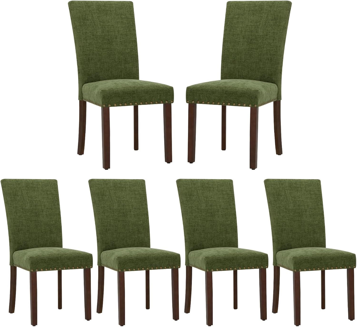 COLAMY Upholstered Parsons Dining Chairs Set of 6, Fabric Dining Room Kitchen Side Chair with Nailhead Trim and Wood Legs - Green