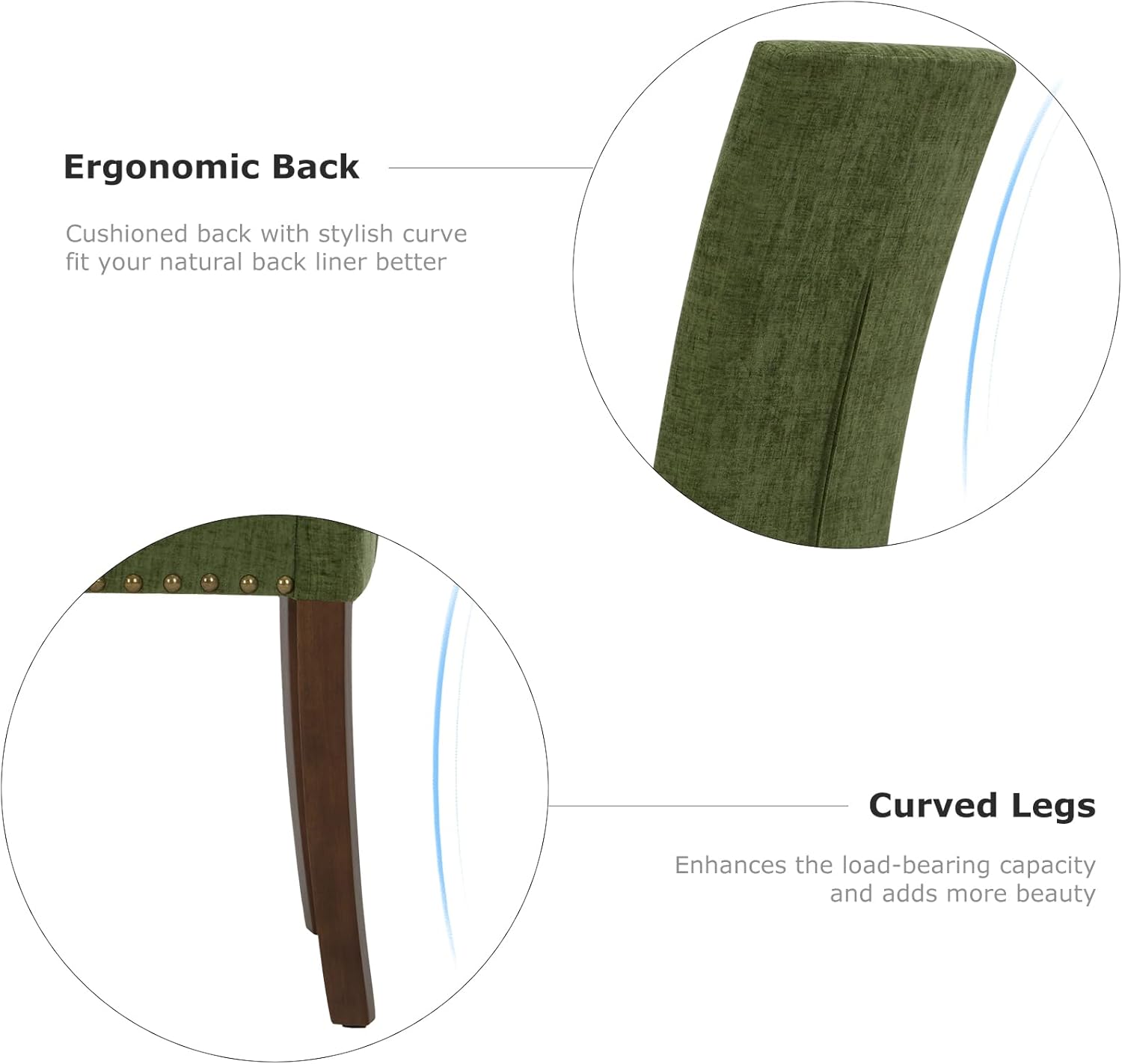 COLAMY Upholstered Parsons Dining Chairs Set of 4, Fabric Dining Room Kitchen Side Chair with Nailhead Trim and Wood Legs - Green