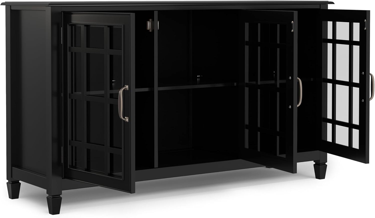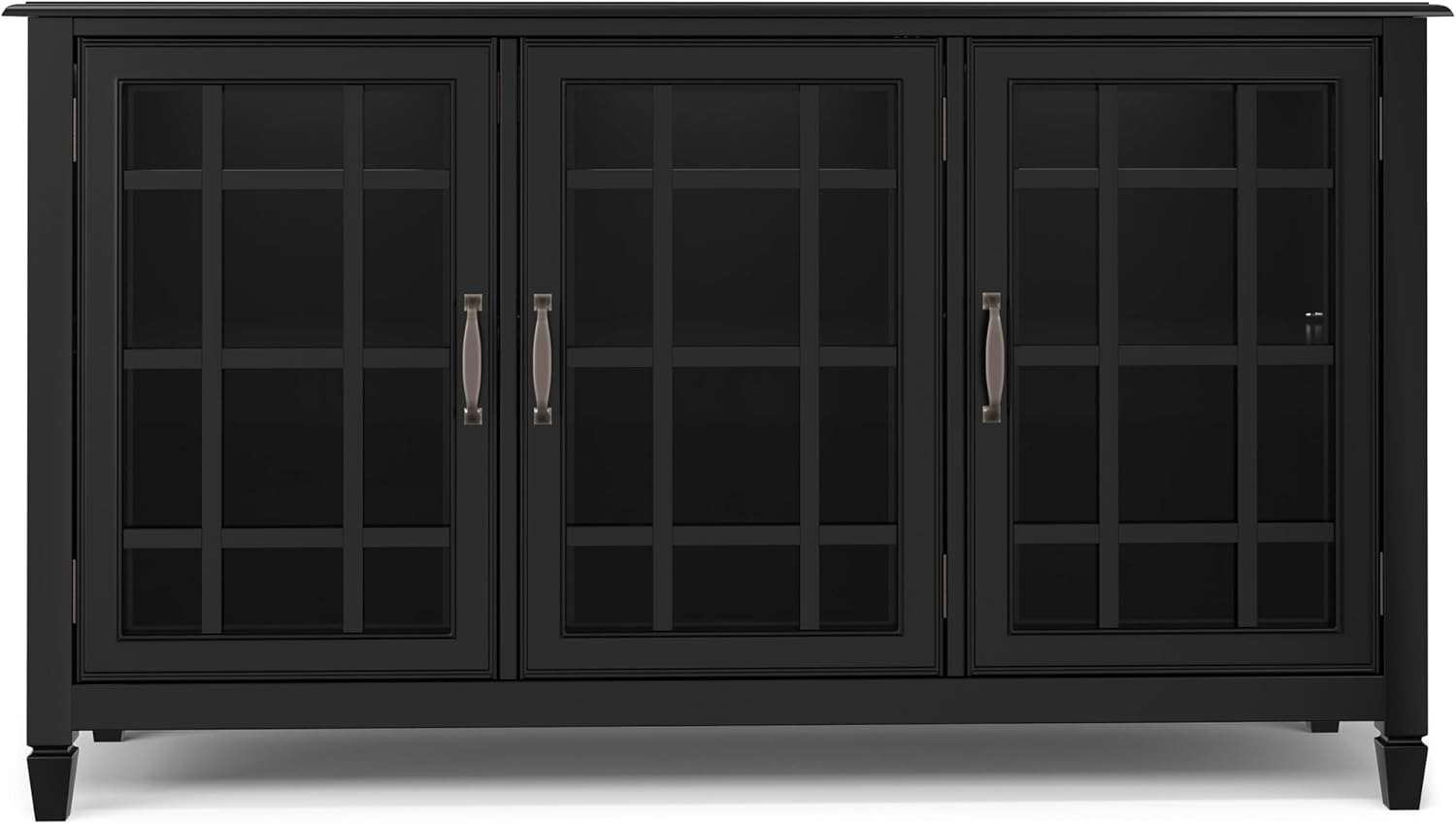 SIMPLIHOME Connaught Solid Wood 60 inch Wide Traditional Wide Storage Cabinet Buffet in Black for The Living Room, Entryway and Family Room
