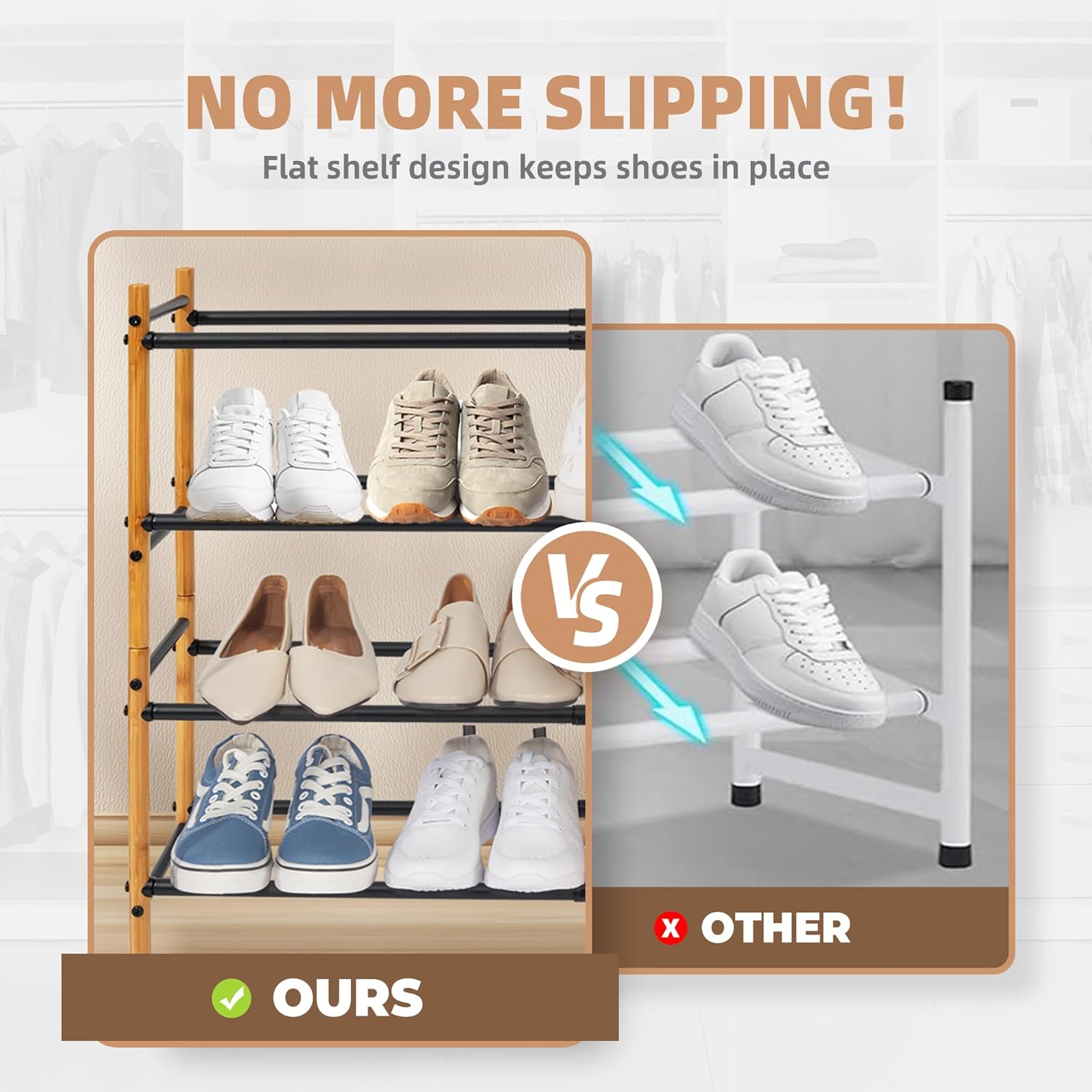 - Stylish Bamboo Design: The bamboo side rods bring a sleek and natural touch, ensuring your bamboo shoe rack looks as good as it is functional.
