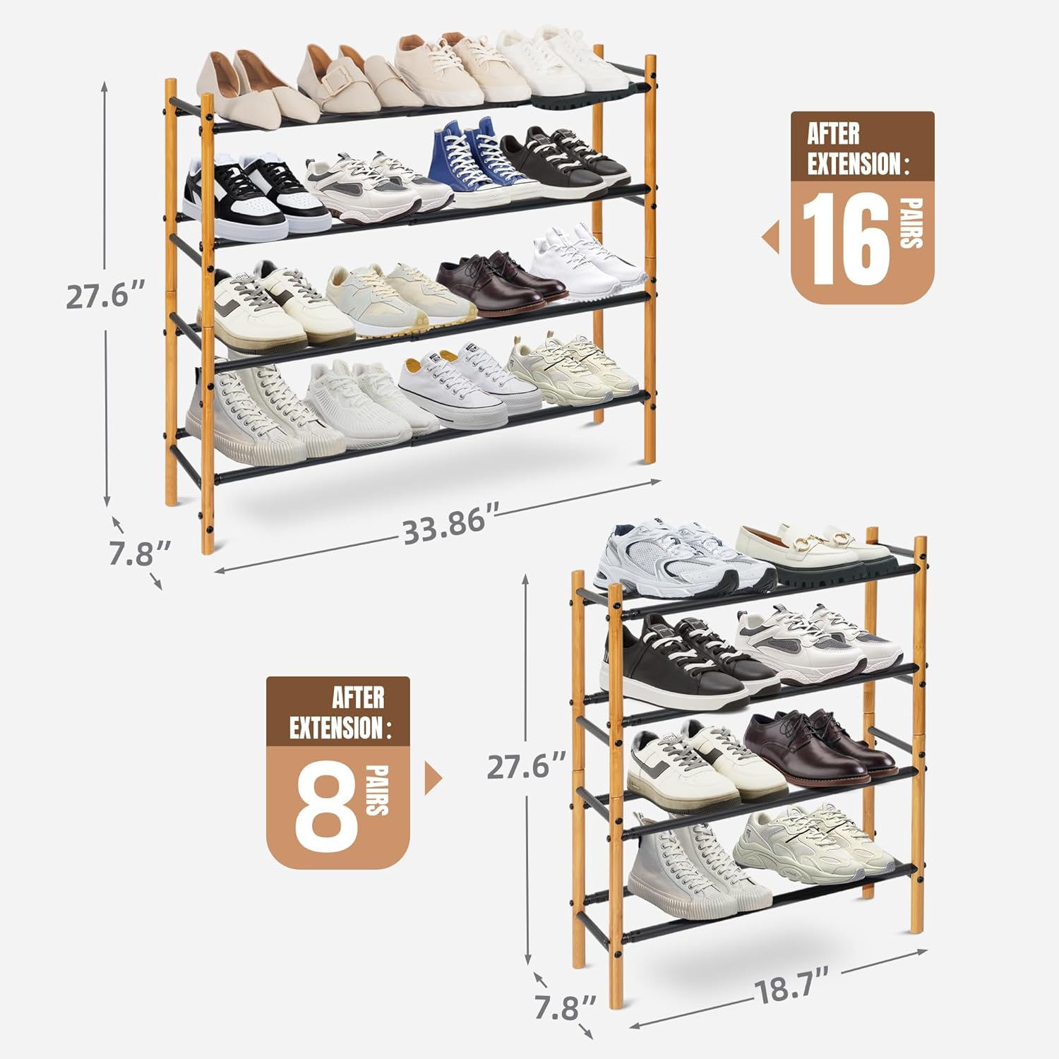 - Expandable and Adjustable: Stretch this expandable shoe rack from 18.7" to 33.86", accommodating 8-16 pairs of shoes—great for large families or shoe enthusiasts.