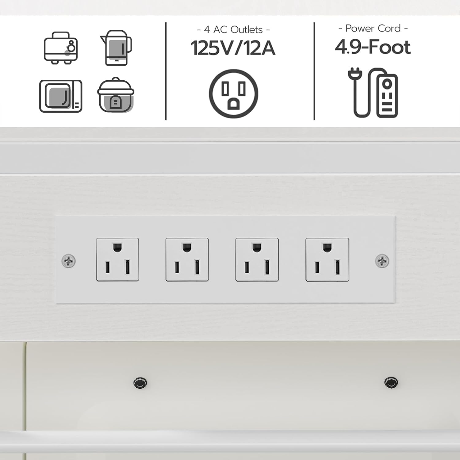 - 4 AC Outlets Bakers Rack: Difficult to use electricity simultaneously? Our bakers rack for kitchen helps solve this problem with four 3-prong power outlets, meeting your demand to utilize appliances at the same time