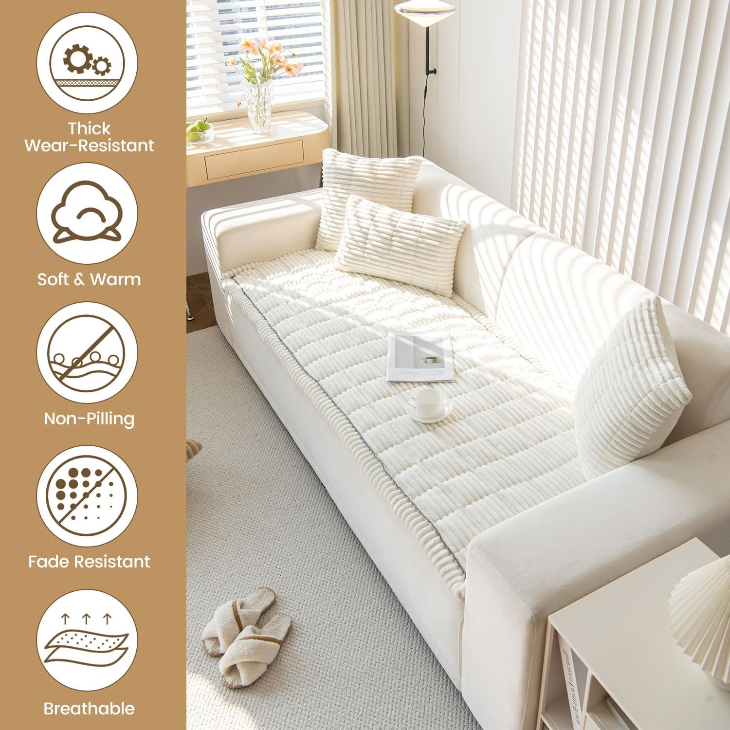 OTOB Couch Cover for Dogs Washable, Non Slip Plush Fuzzy Sofa Covers for 3 Cushion Couch Pet Friendly, Soft All Seasons Sofa Slipcover Cozy Furniture Protector (Cream, 31.5" x 82.7")