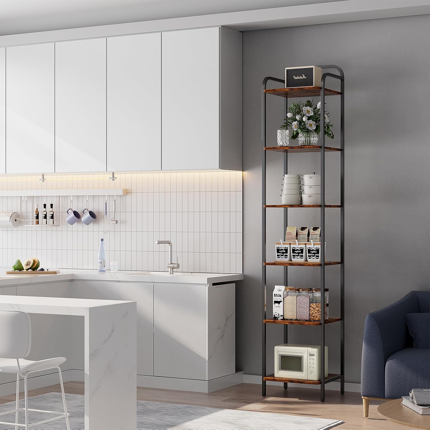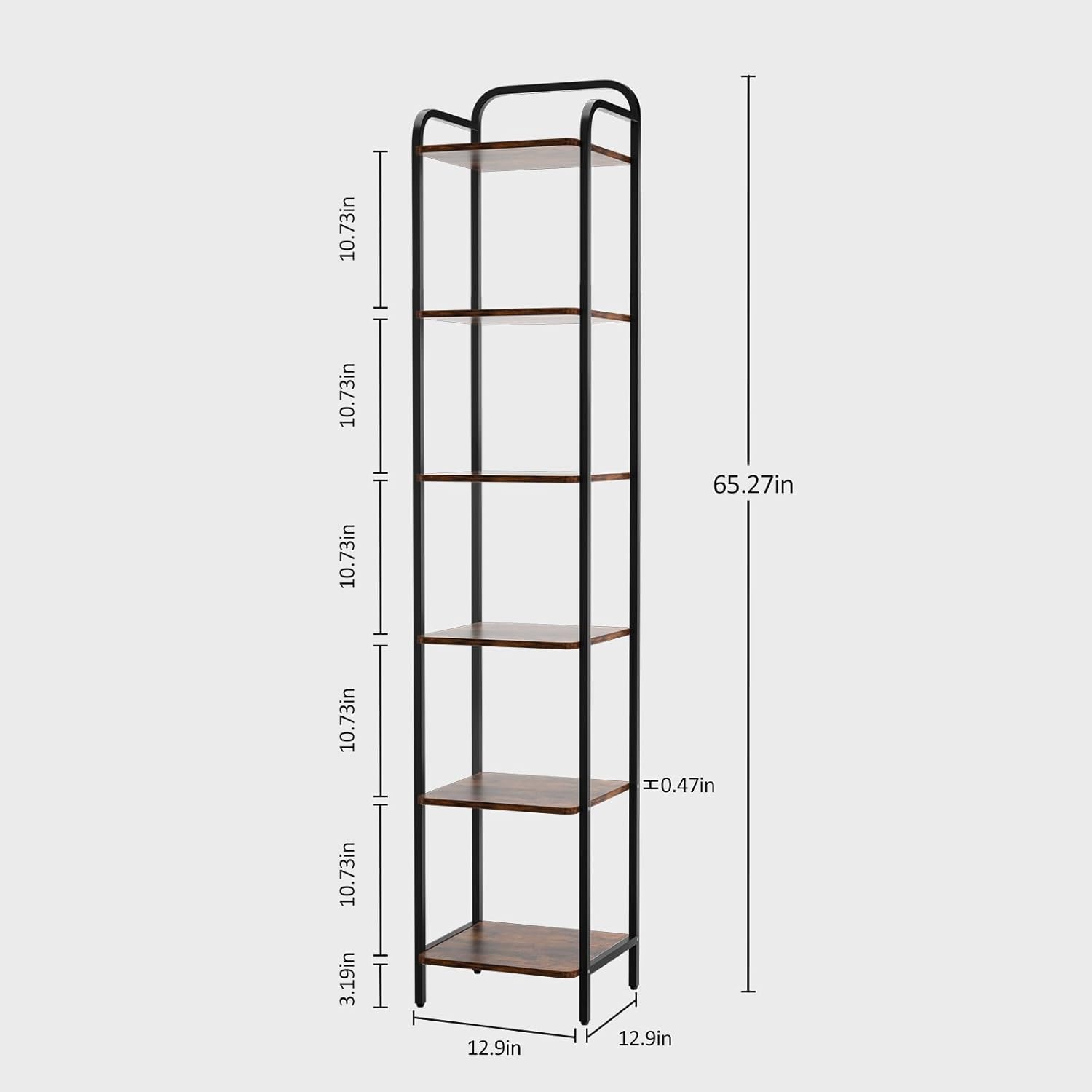 5 Tier Bookshelf, Bookcase with 5 Shelves, Storage Rack Organizer, Corner Wood Storage Shelf with Metal Frame for Bedroom, Living Room (Rustic Brown, 6 Tier)
