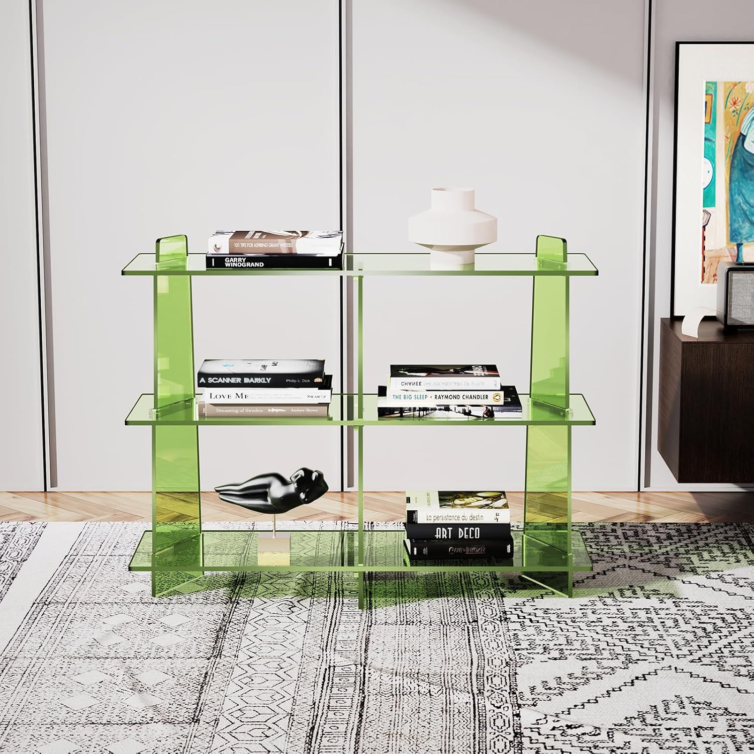 Acrylic Bookshelf, Small 3 Tier Open Bookcase for Small Spaces,Sofa Table, Hallway Entry Table for Home Living Room (Green, 39.4'' x 11.8'' x 31.5'')