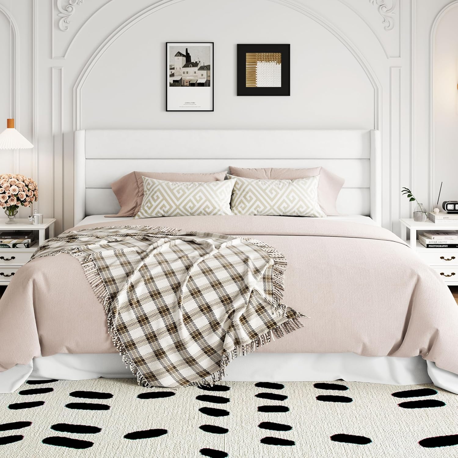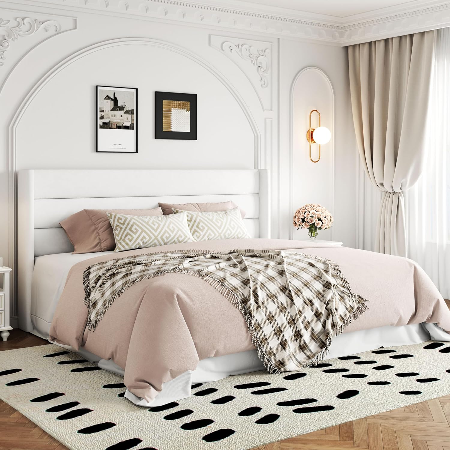 - Elegant Headboard: High wingback headboard adds elegant aesthetics to your bedroom. Horizontal channel pattern illuminates stylish and minimalist trends