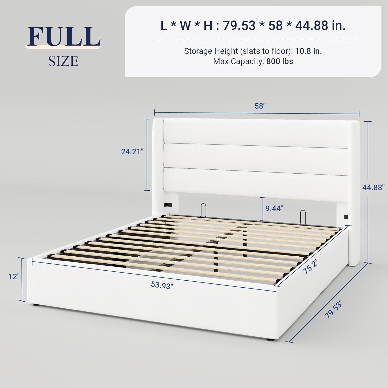 Allewie Full Size Velvet Lift Up Storage Bed, Modern Wingback Headboard, Hydraulic Support, No Box Spring Needed, White
