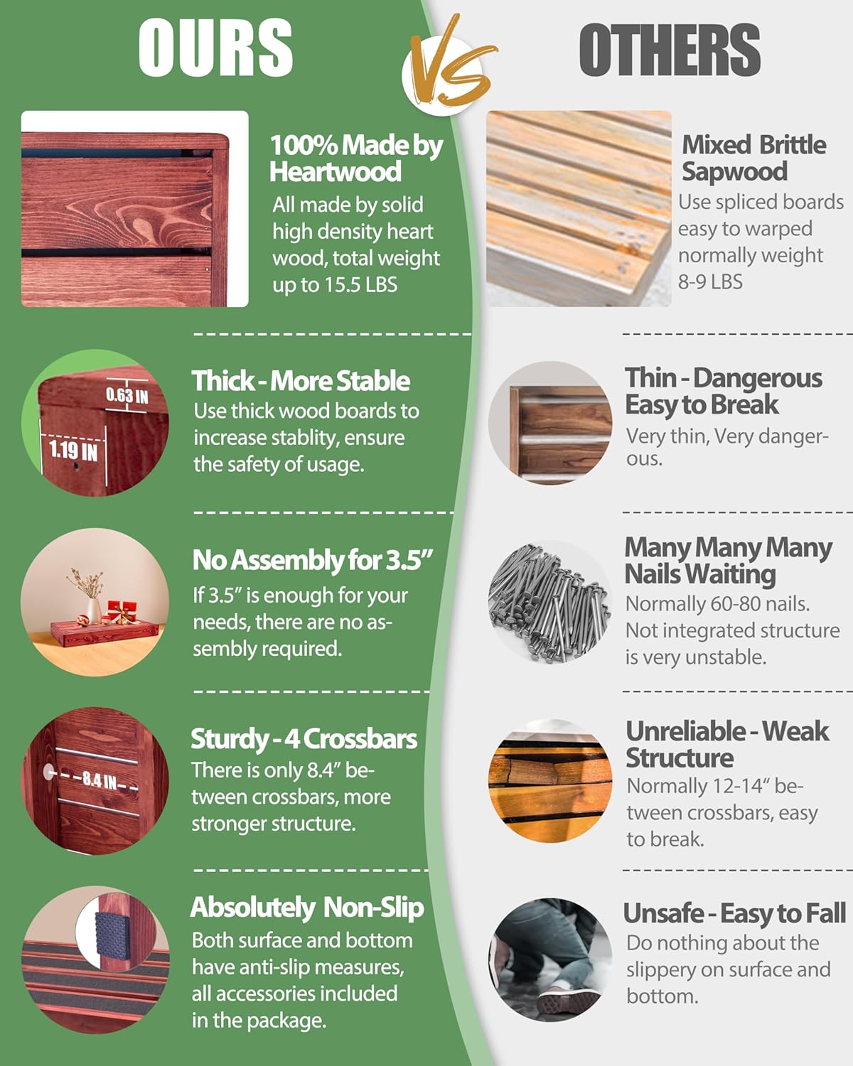 - Special Feature : 100% heartwood, Adjustable Height, Corrosion-Resistant, Heavy Duty, Slip Resistant Step