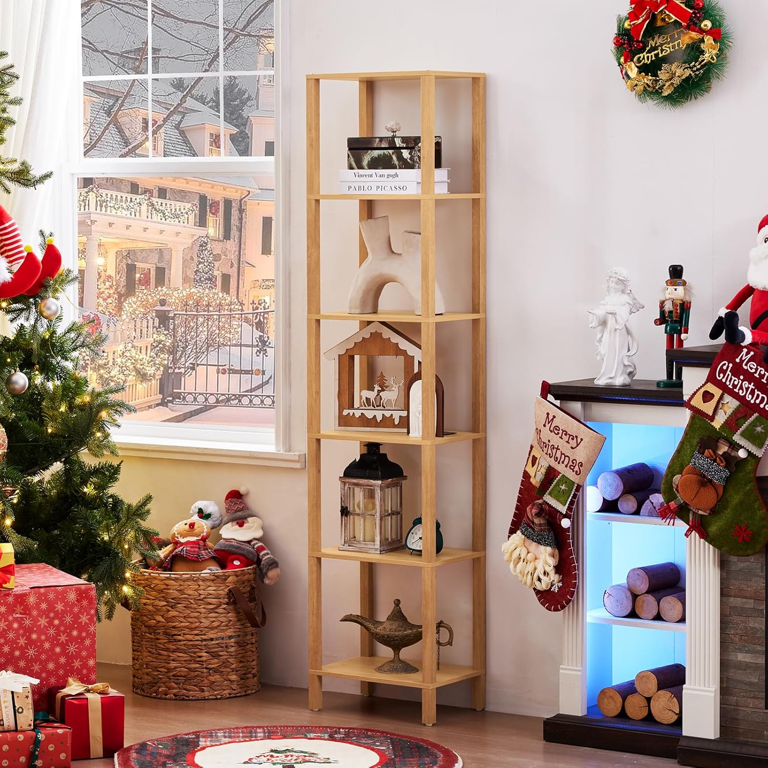 66in Tall Bookshelf 6-Tier Small Narrow Bookcase, Skinny Book Shelf for Small Space, Farmhouse Slim Shelf with Storage, Wood Freestanding Display Thin Bookshelves for Living Room, Natural