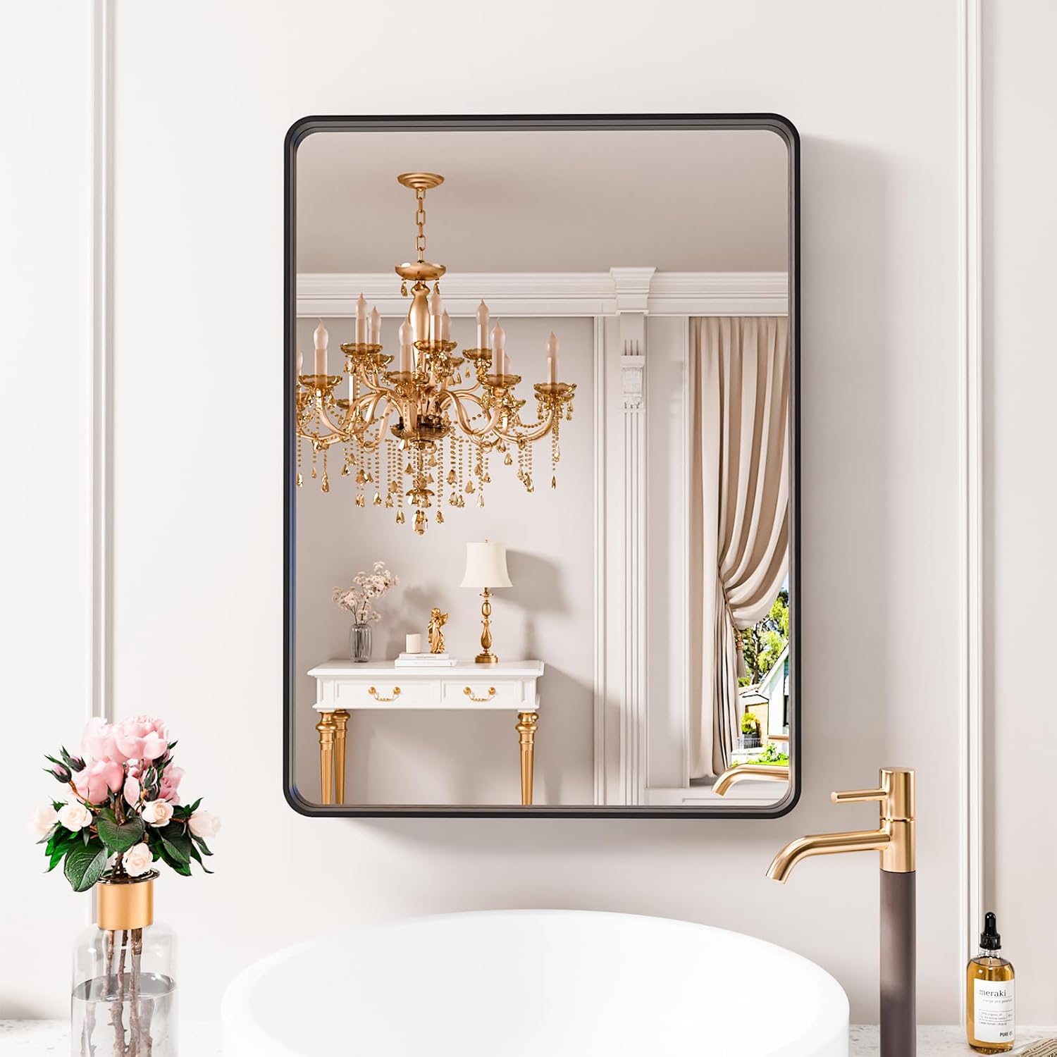 - Quick Installation: The rounded rectangle wall mirror adopts Z-shaped wall mounting design, unlike other mirrors with small holes arranged, no tools are needed, you can effortlessly install the bracket vertically or horizontally in any space you want, such as bathroom, bedroom, living room, entryway, corridor, corner