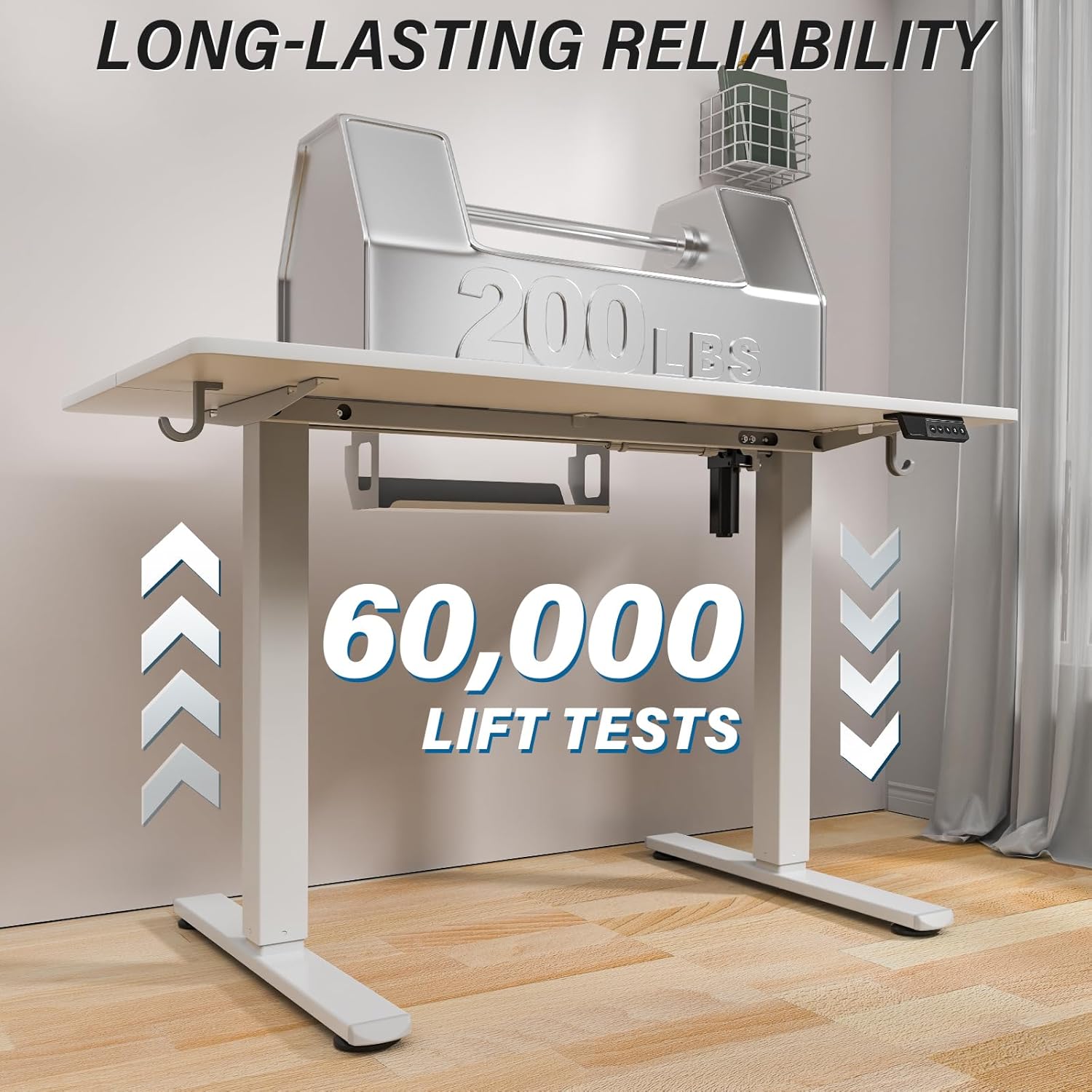 - Sturdy Frame for Superb Load-bearing Capacity: The overall frame of the electric desk is constructed with a 1.5mm heavy-duty steel frame structure, combined with a thickened desktop, ensuring the long-term stability and durability of the standing desk electric. It has a load-bearing capacity of up to 180 LBS and has passed 60,000 lift tests after years of use