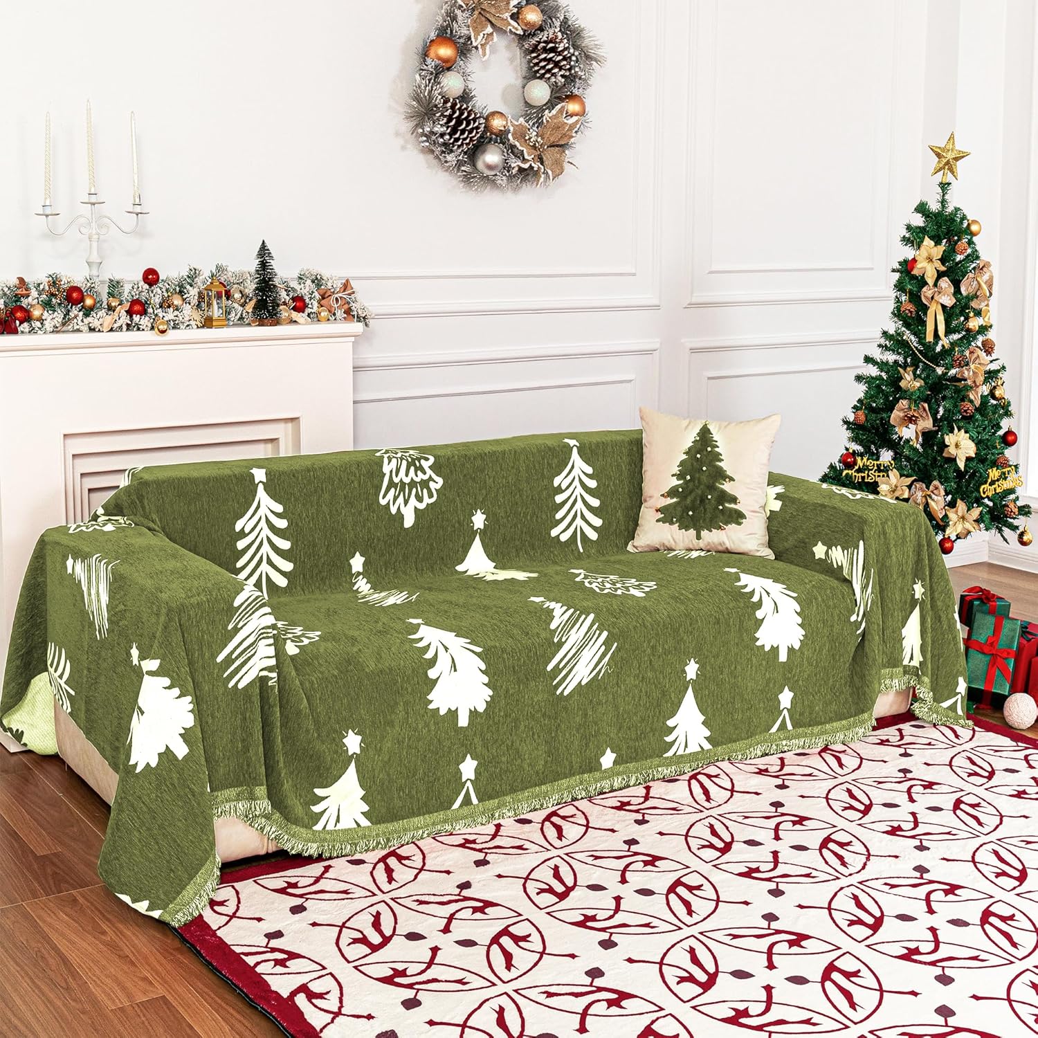 MYSKY HOME 71"X118" Loveseat Christmas Couch Cover, Sectional Sofa Covers Sofa Slipcover for 2 Cushion Couch, L Shape Couch Covers for Dogs, Kids, Washable Sofa Blanket, Furniture Protector, Green