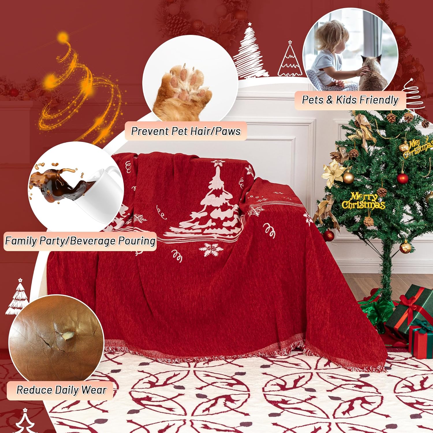 - High Quality: Couch throw cover furniture protector is made of thick chenille fabric, super soft and skin-friendly to the touch, tear-resistant, good drape, breathable, comfortable and durable. Suitable for all seasons and will not pilling or fading after washing.