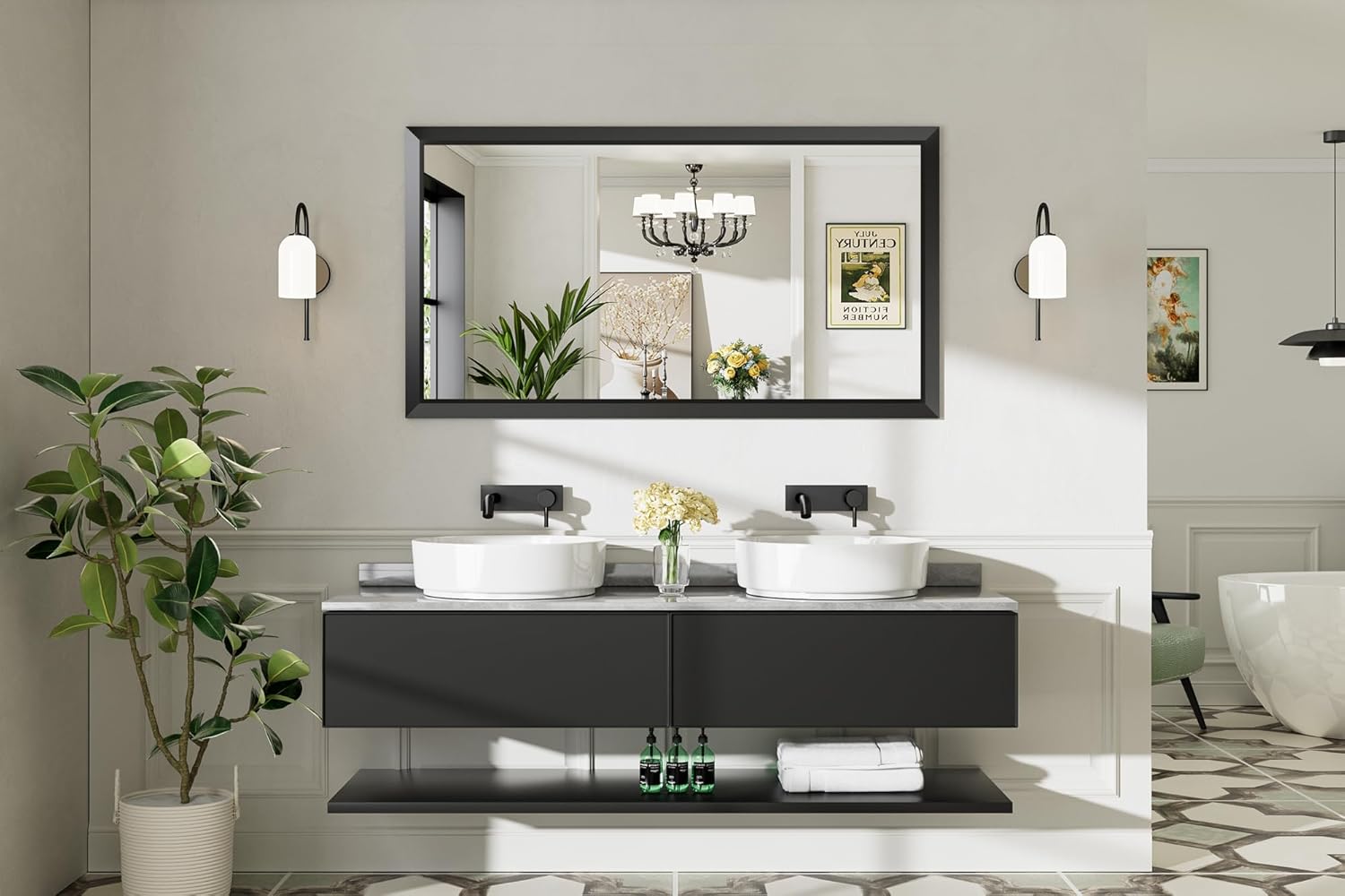 - ššÆšš«šš„š„ ššš¬šš”ššš¢šš¬ š šØš« ššØšØš¦ šĆ©ššØš«: The bathroom mirrors for over sink with its modern frame, not just for bathroom, it also can be used in a variety of scenarios, like vanity, farmhouse, bedroom, living room, dining room, entryway, fireplace, corner which is perfect to a room remodeling project and adds a stylish look to your house.