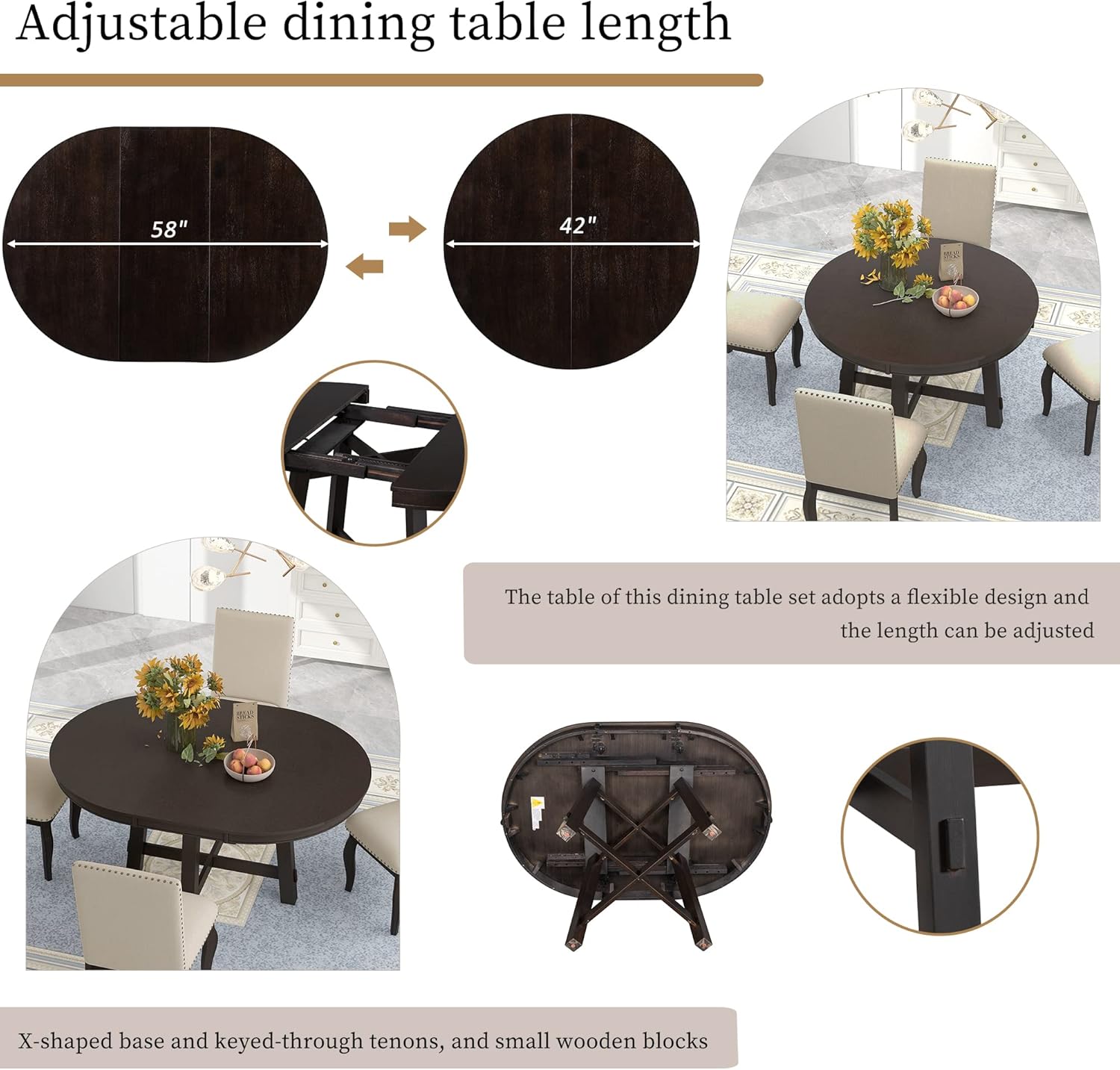 Ball & Cast 5 Piece Dining Table Set with 4 Upholstered Curved Legs Chairs,Living Room Furniture W/ 43" Round Extendable Desk,for Restaurant,Home Bistro,Espresso
