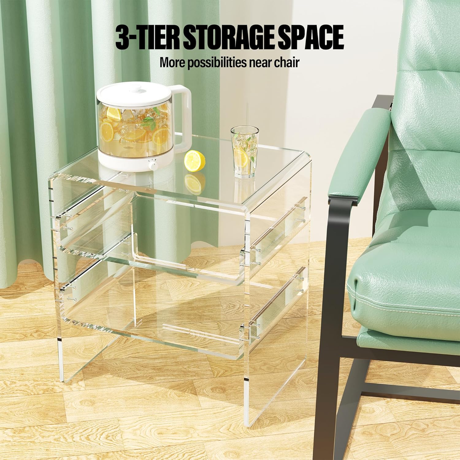 - Versatile Placement: Perfect as a bedside table, sofa side table, or bathroom organizer, this acrylic end table complements any room and decor style
