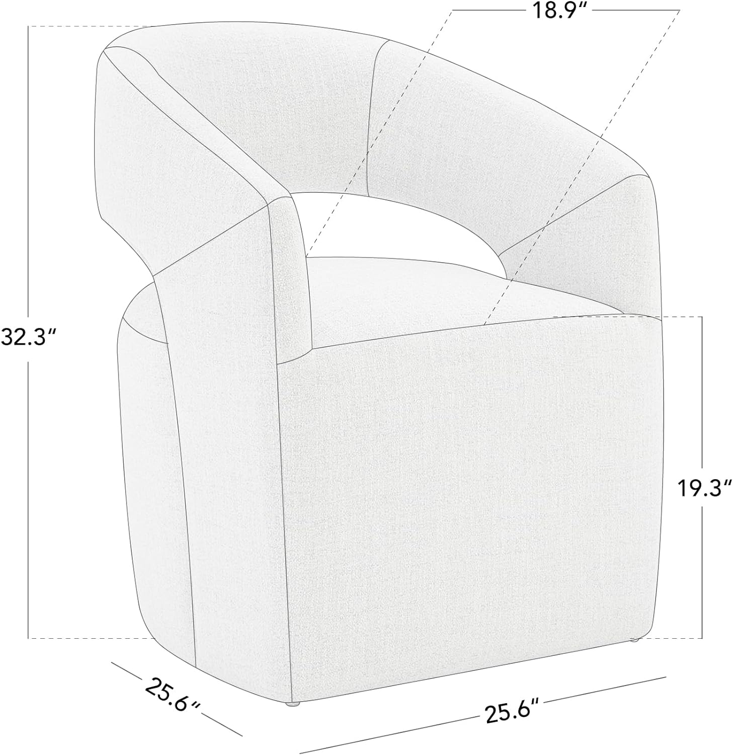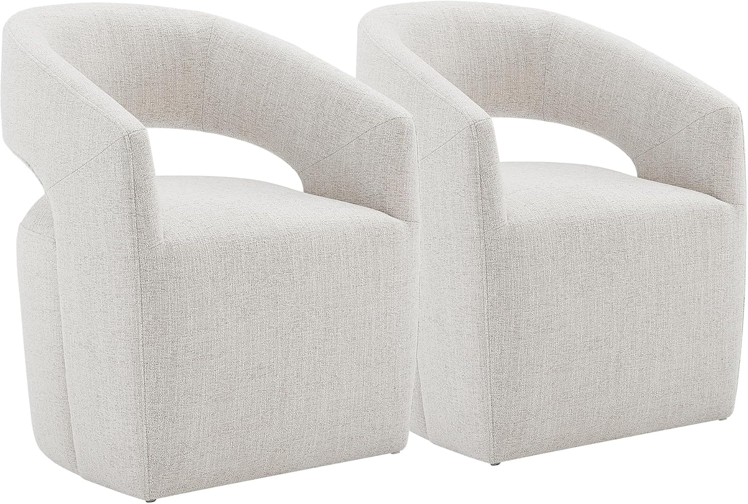 Upholstered Dining Chairs with Casters No Assembly Modern Barrel Armchair with Rollers for Diningroom Bedroom Livingroom Reading Room,Set of 2,White