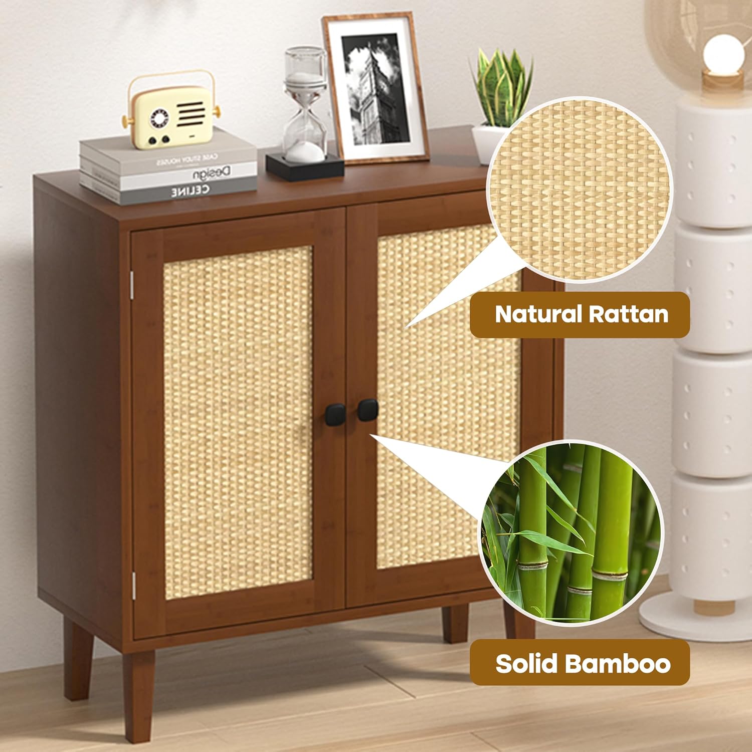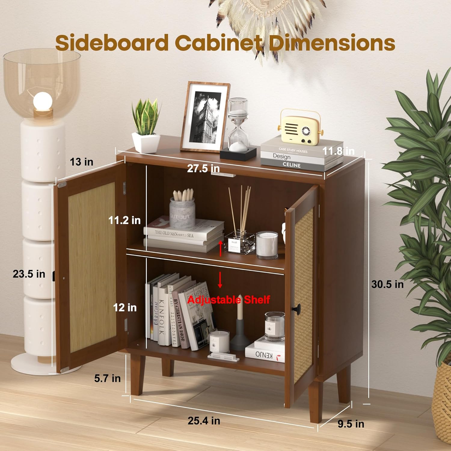 - Enough Space: Measurements 27.6" L x 11.81" W x 30.7" H. With 2 rattan doors and an adjustable inner shelf, you have the flexibility to customize your space and easily organize both tall and short items to suit your various needs.