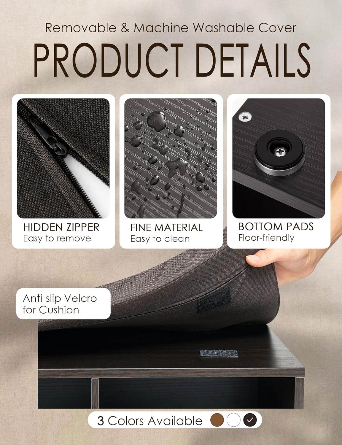 - 【Focus on Details】The sponge cushion is high resilient, soft, breathable without deformation. Zippered cotton and linen dust cover is removable and washable. Velcros secure the cushion to the mudroom bench, preventing shifting and slipping. Non-slip pads on the bottom protect your floor from scratches