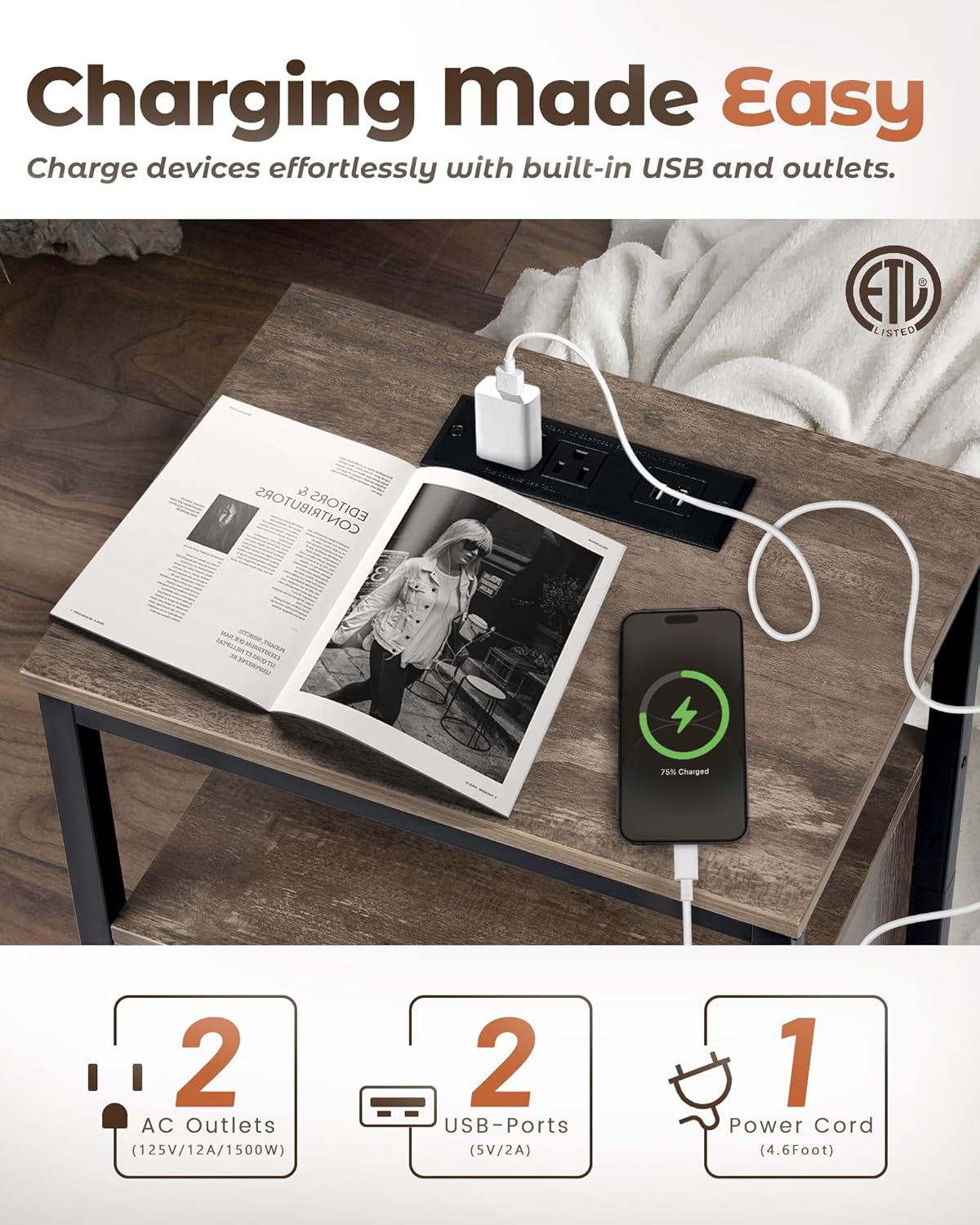 - BUILT-IN CHARGING STATION - Stay organized and powered up! This cat side table features 2 USB ports and 2 AC outlets, ideal for charging devices or powering table lamps. Say goodbye to cable clutter with this convenient, built-in solution.