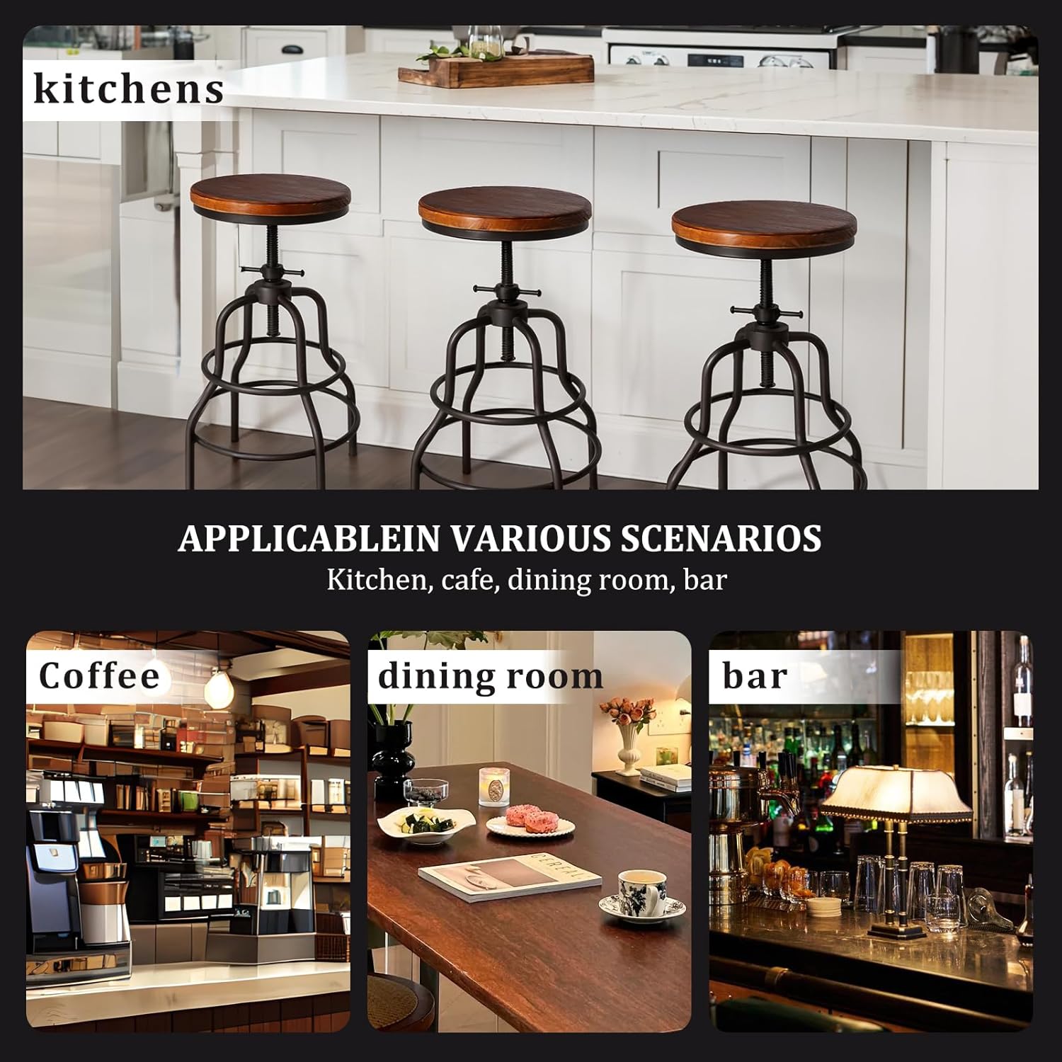 - [RUSTIC INDUSTRIAL STYLE] Perfectly fit in your kitchen,home bar,café or bistro.Adding a rustic industrial style with this stool to your space,and offering leisure time to your guests.