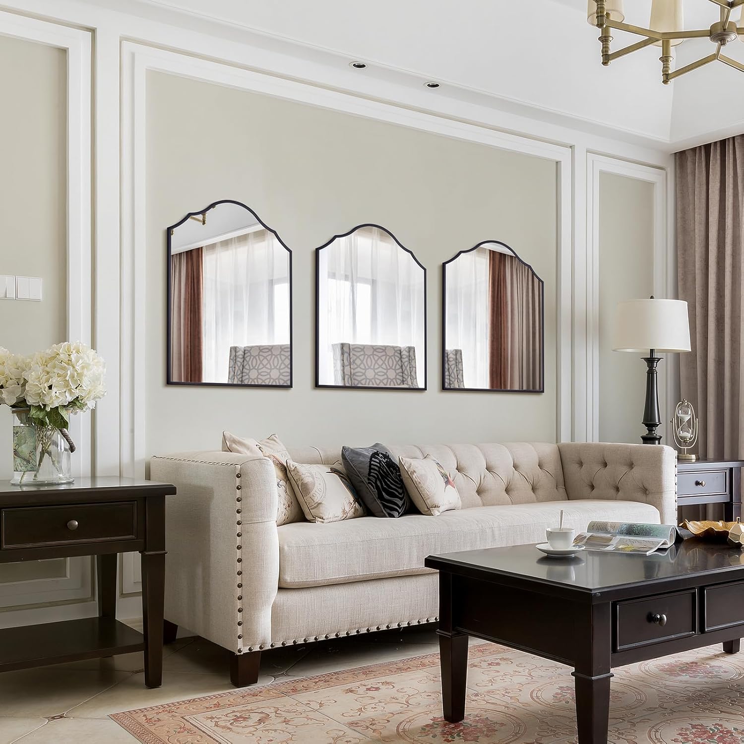 - 【Versatile Placement】: Whether it's commanding attention in an entryway, enhancing light and space in a living room, or serving as a decorative vanity mirror in a bathroom or bedroom, this mirror adapts to your design needs