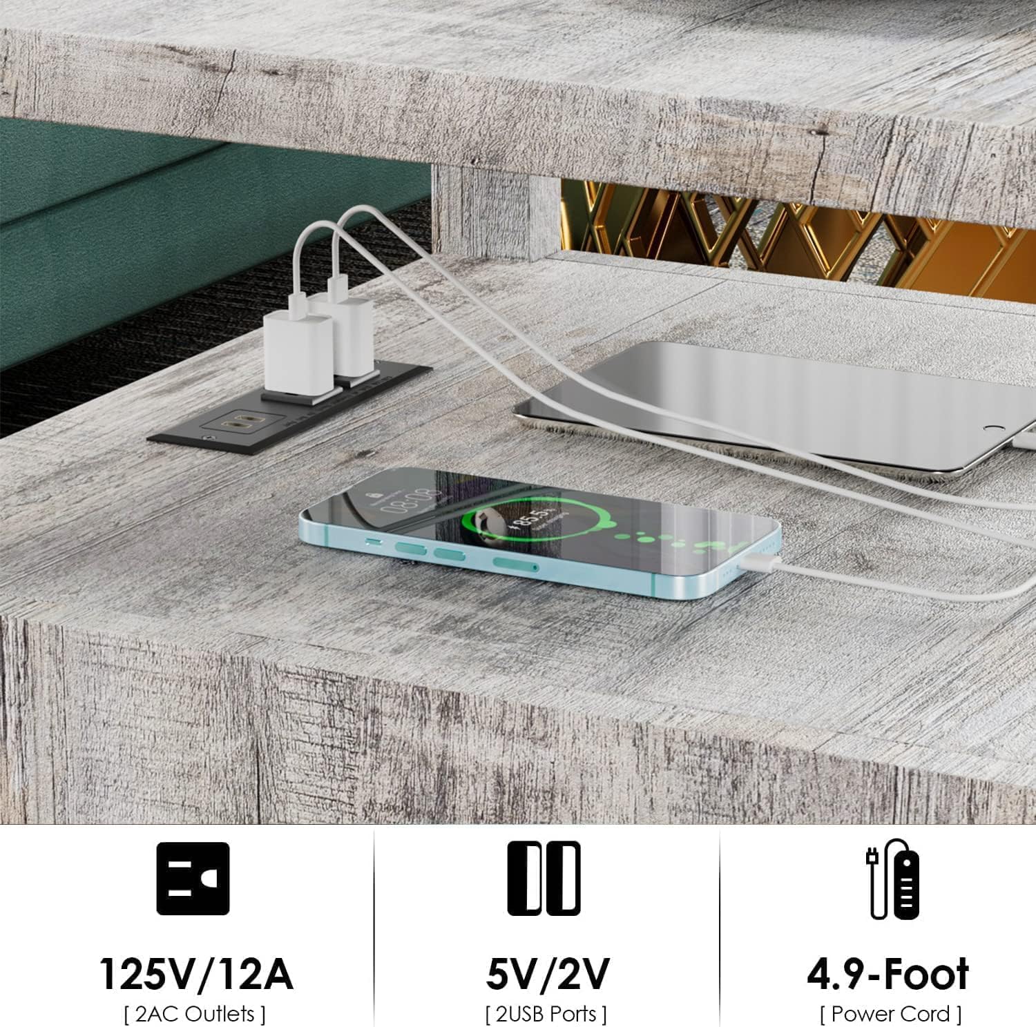 - NIGHTSTAND WITH CHARGING STATION - 2 AC Outlets & 2 USB Ports with Cable Management for 5.9ft long power supply cord that is convenient for charging your phone, tablet, lamp, game console and etc.. Socket is in open shelves, easily hide without compromising the cleanliness and overall look of your desktop.