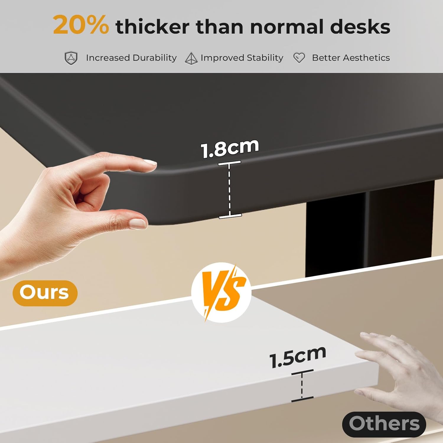 - Solid Whole Piece Tabletop - The one-piece desktop is free of seam breaks for a completely smooth surface. Special 39.4” x 19.7” size is space efficient, can easily fit into any small area, sufficient for computers, laptops, keyboard and other office supplies