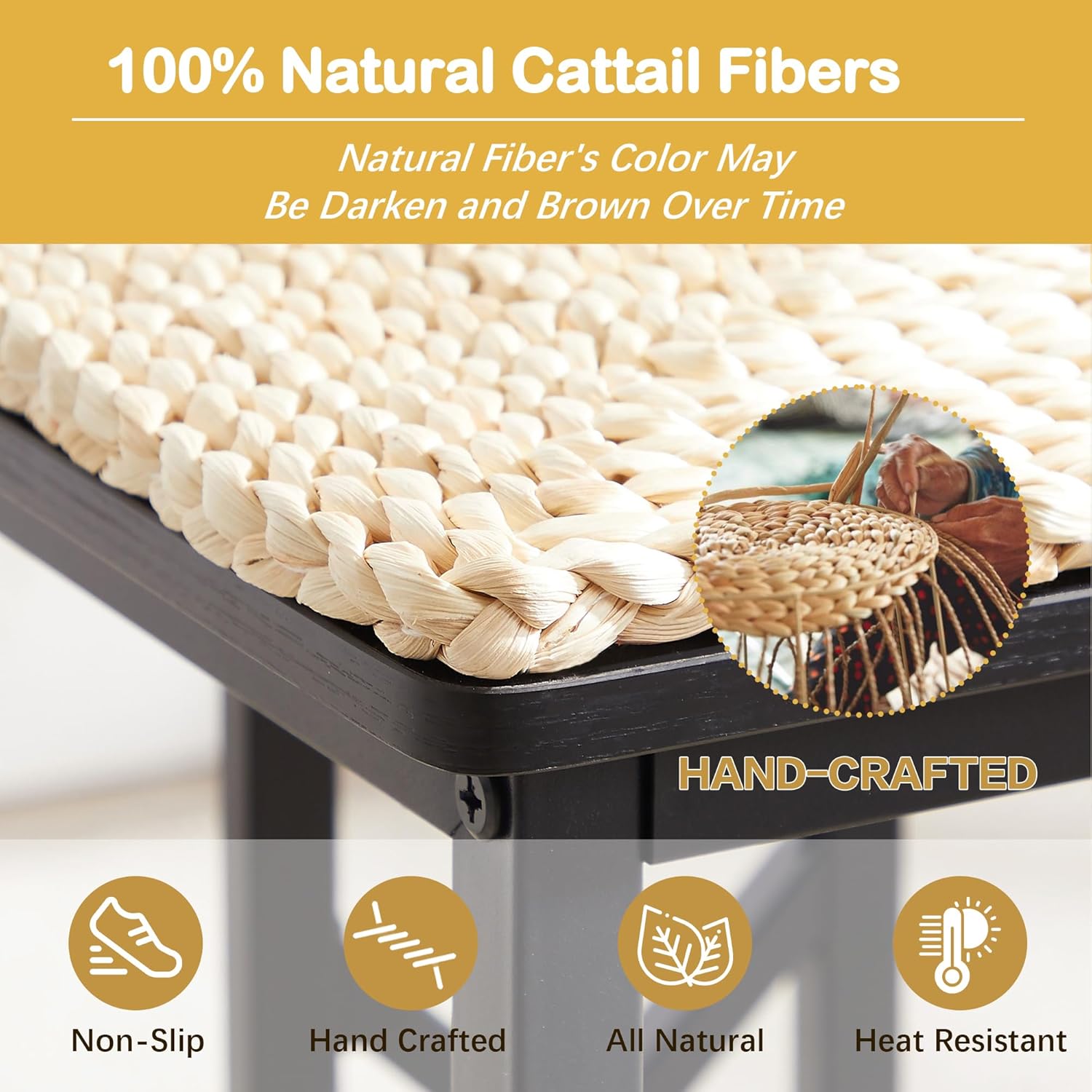 VECELO 43.3" Dining Table Sets, Farmhouse Small Kitchen Table for 4 with 2 Benches Wicker Mats,Metal Frame Space-Saving Adjustable Feets Coffee Table for Home Kitchen Dining, Pitch Black