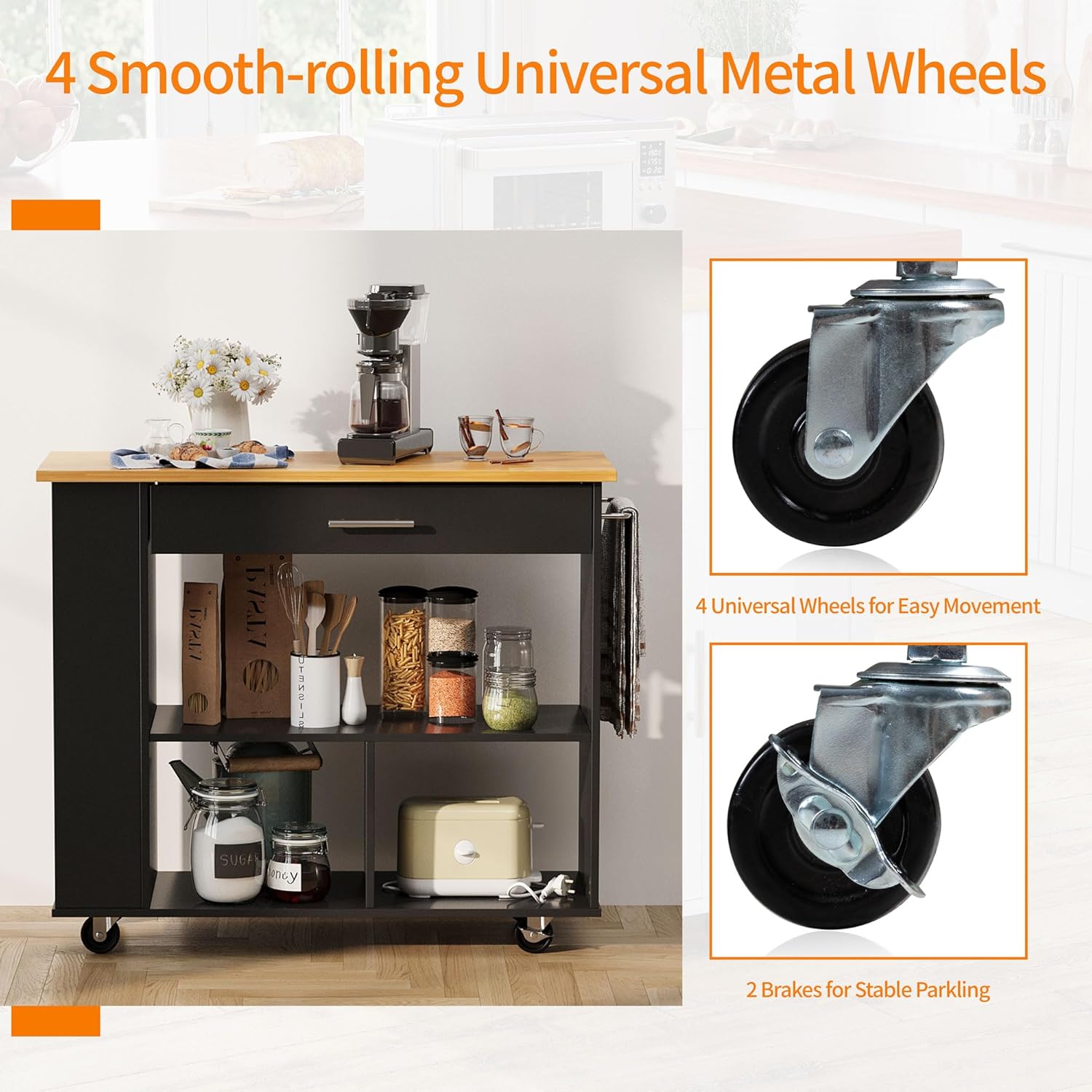 - 【Extra Sturdy Work Station】Made of sturdy wood, the table top is sturdy and water-resistant. Smooth surface of the kitchen island cart keep water away and clean easier, providing an extra work station to your kitchen