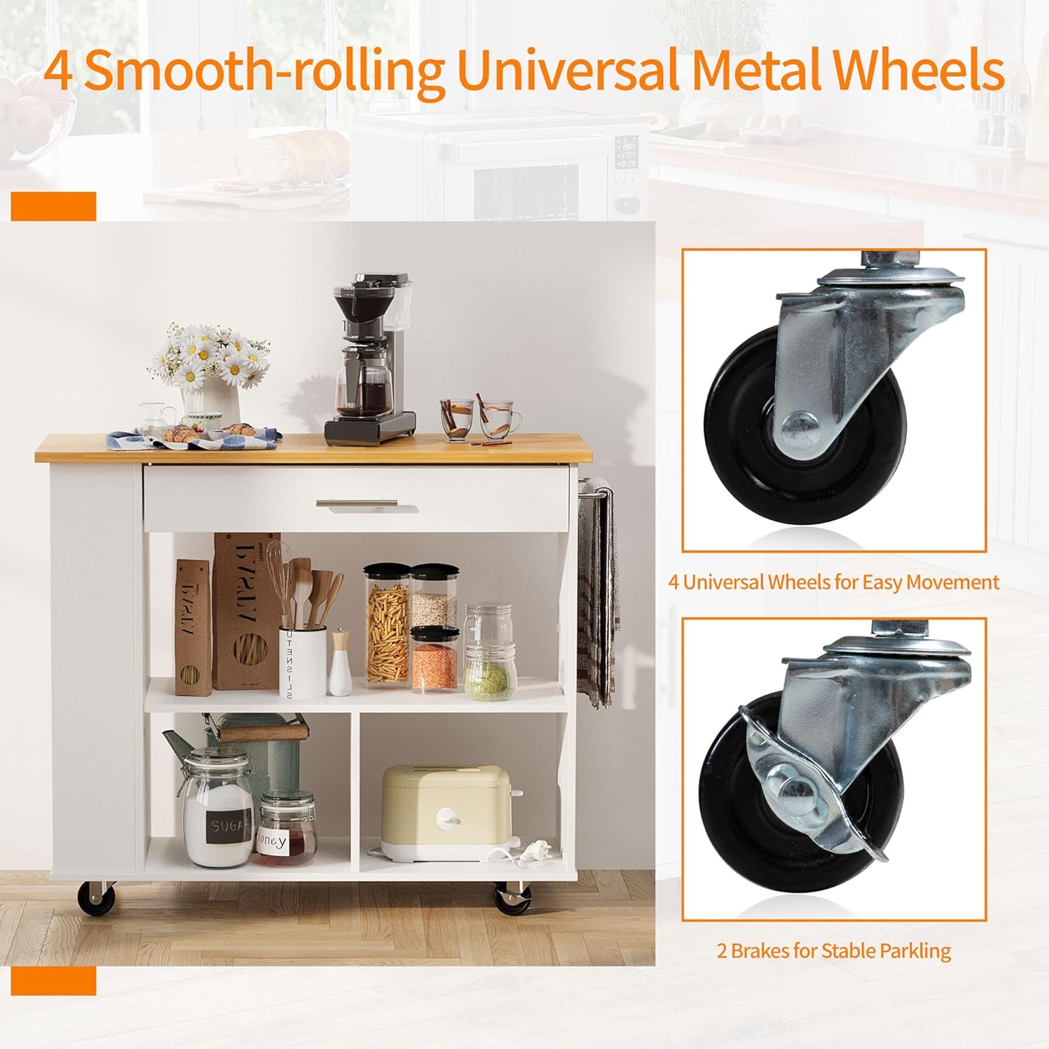 - 【Extra Sturdy Work Station】Made of sturdy wood, the table top is sturdy and water-resistant. Smooth surface of the kitchen island cart keep water away and clean easier, providing an extra work station to your kitchen