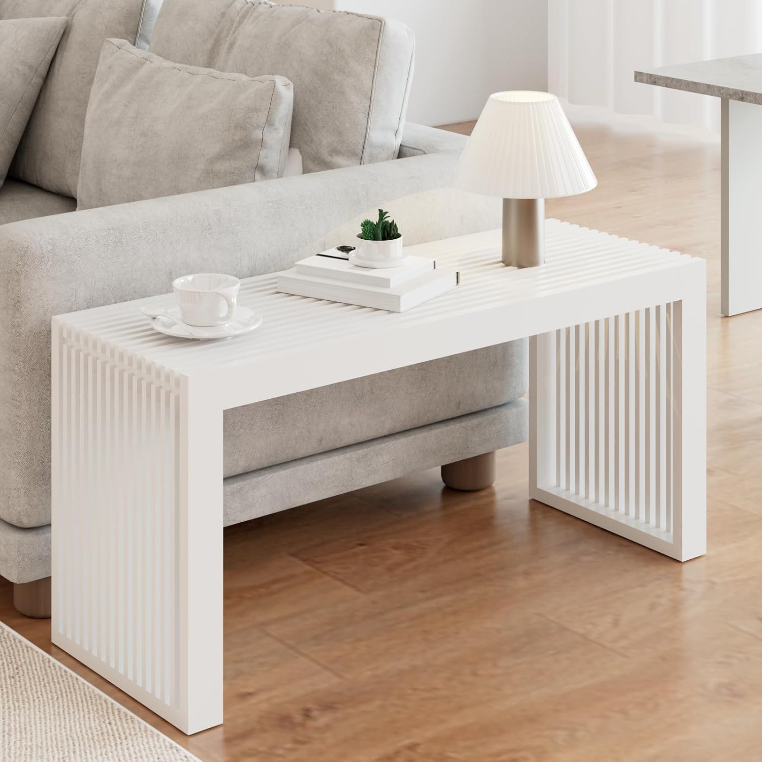 Bamboo Dining Bench Indoor Long Entryway Shoe Rack Benchs,Outdoor Modern Wood Benches 35 Inch Bamboo Bench for Living Room Hallway Bedroom Bathroom White