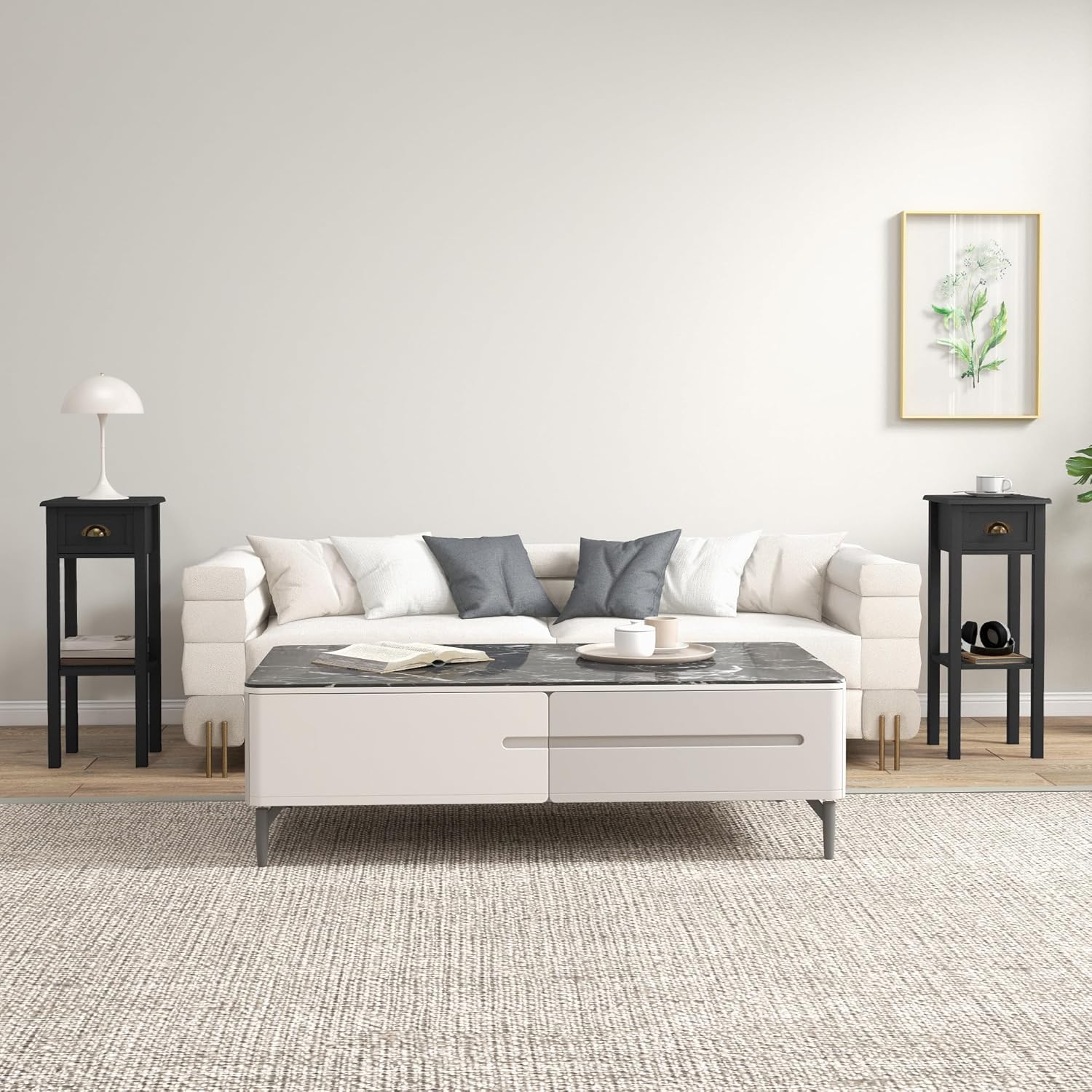 - Added Storage: The side table features a single slide-out drawer and a lower shelf that add storage for magazines, books, plants, or photos.