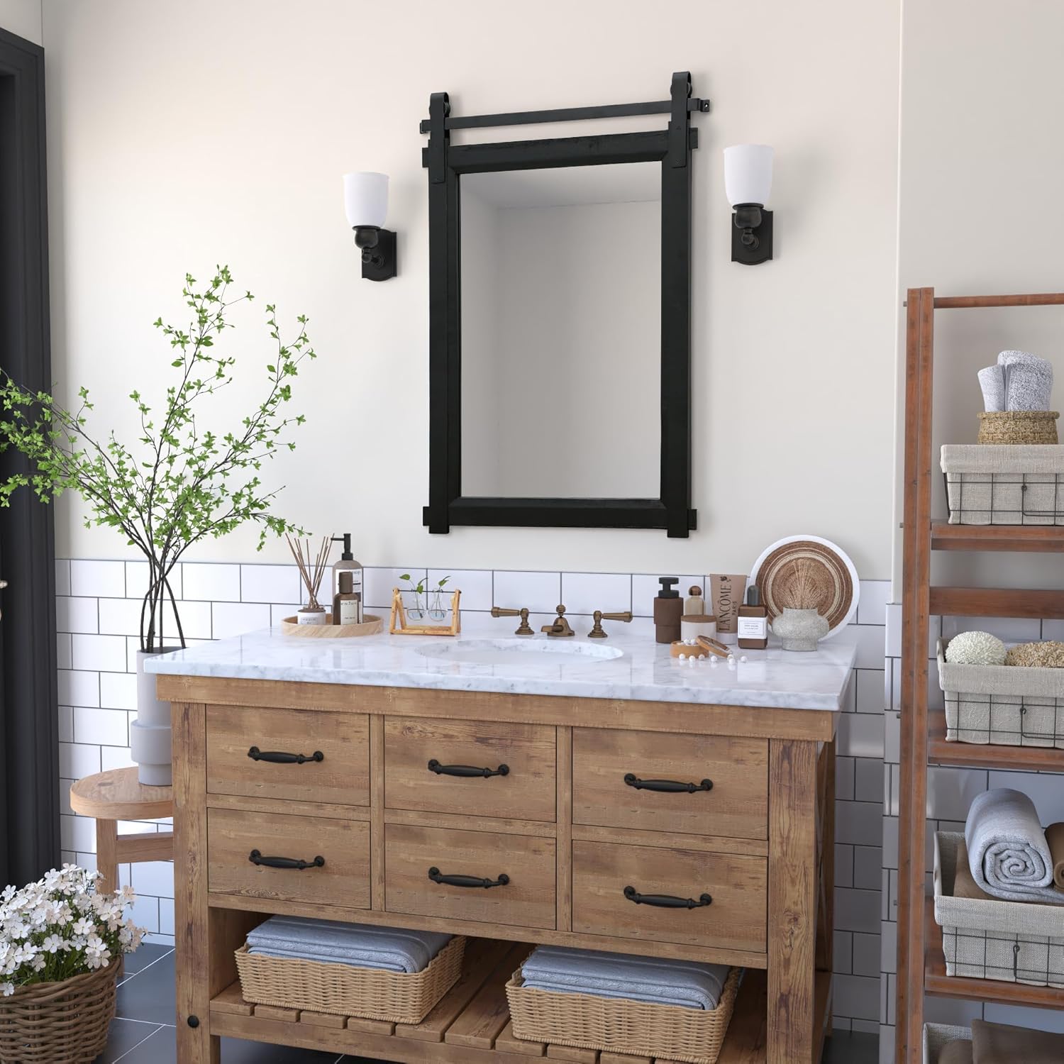 - Easy Installation: Your mirror comes with all necessary mounting hardware, including heavy-duty wall anchors, screws, and mounting brackets to ensure a hassle-free mounting, allowing you to safely display your barn door mirror right out of the box