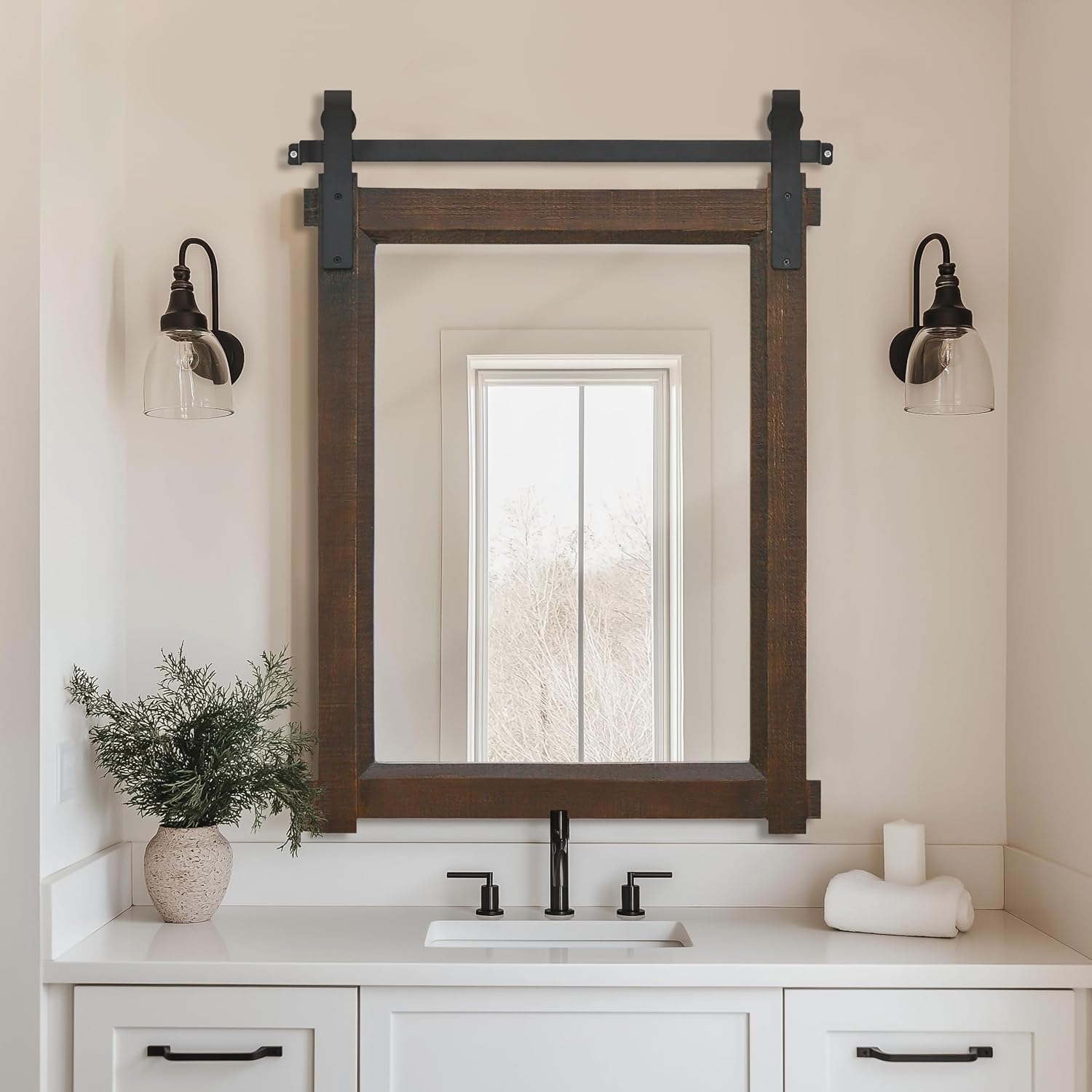 - Versatile Settings: Versatile by design, this rustic mirror adapts seamlessly to any setting - from bathroom vanities to bedroom walls, entryways to living spaces. Its adaptable style makes it an ideal decorative element wherever you need to add both function and farmhouse flair